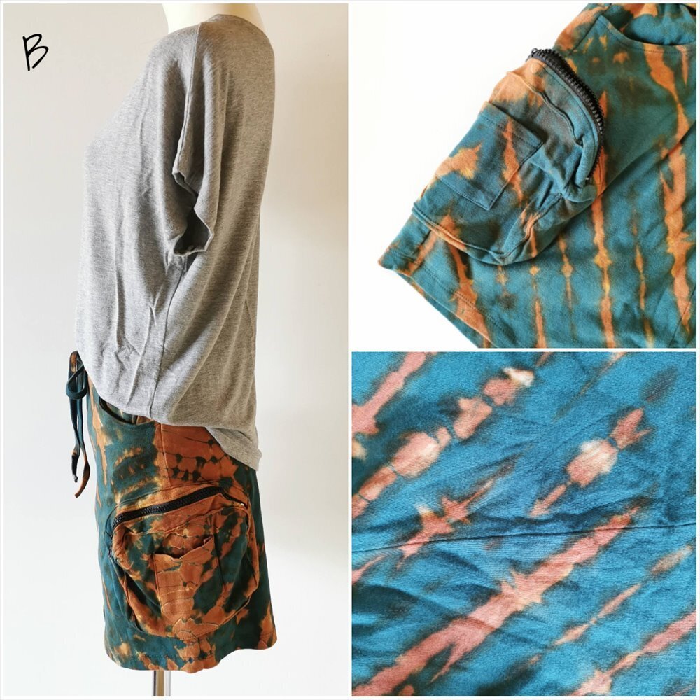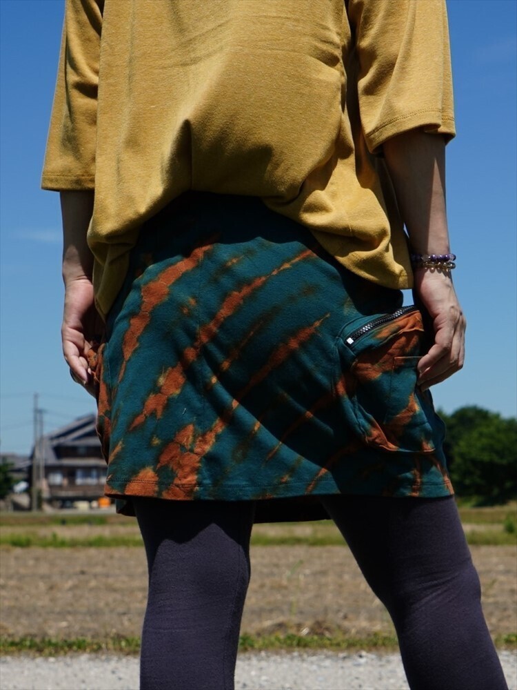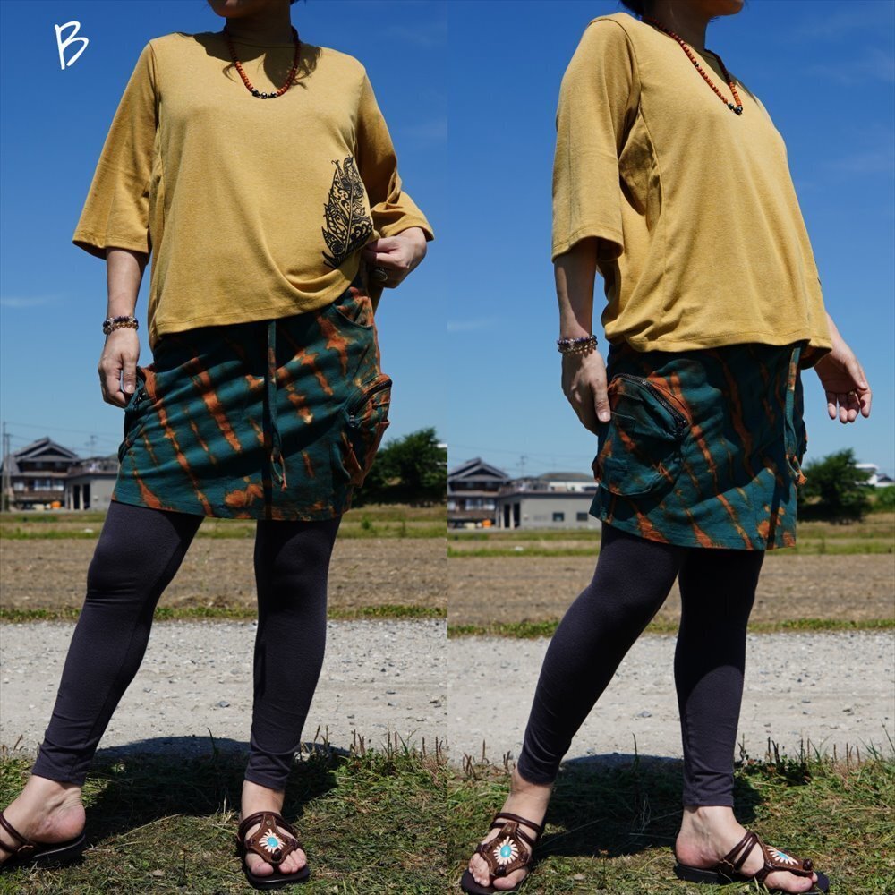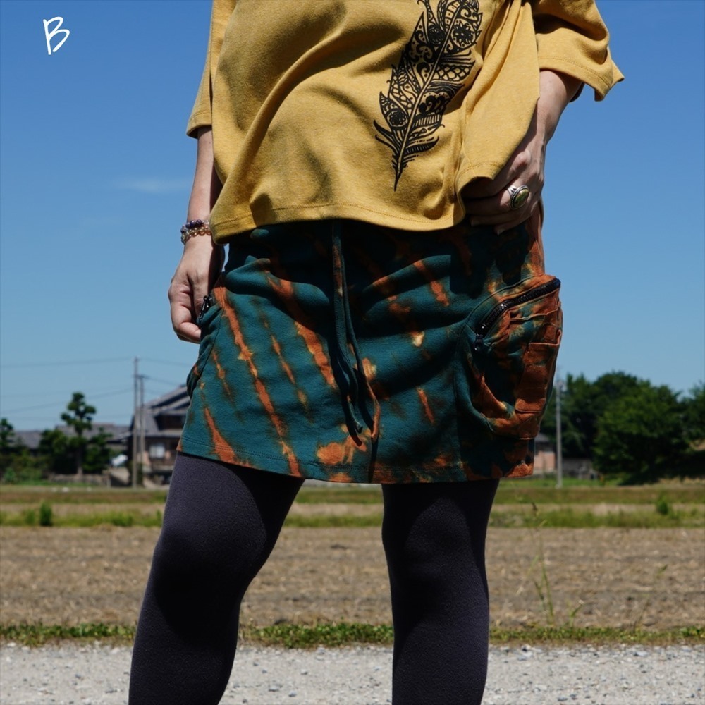 ★エスニック タイダイ カーゴスカート 送料込★新品未使用B★コットン素材 ヨガ ストレッチ アウトドア オーバースカート