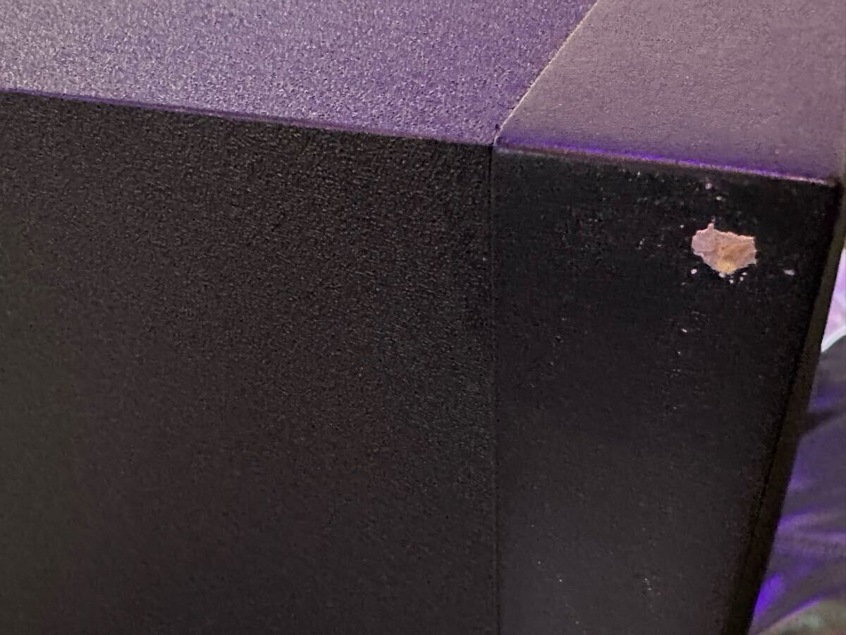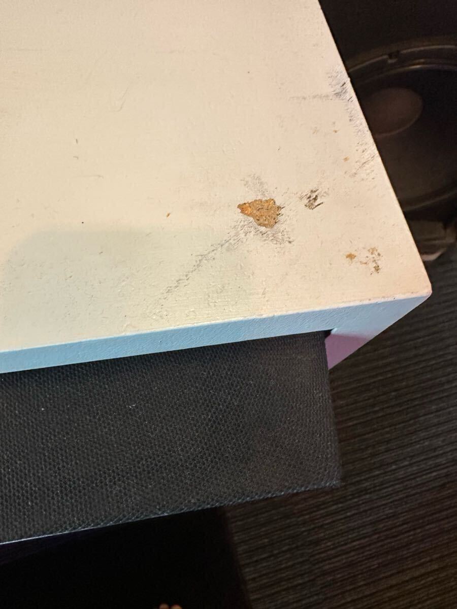 最後の最後でやってしまいまして。JBLの白箱の上に置いておいたら、JBLの白色がadamの底面に付いたり、