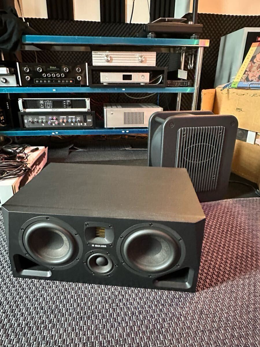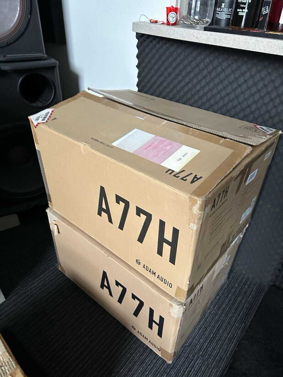 adamの塗装がJBLの白箱にくっついて持っていかれてしまいました。そんな剥がれが数カ所あります。タッチペンすればOKかと。もちろん打ち傷ではありませんし、底面なのでSETしたら全く見えない部分で音質や強度には全く問題ありません。ワンオーナーの為、連番ペア 元箱ありの極上品でありました。宅上の音作りやスタジオ、Barや店舗でも充分に使用可能です。定価は36万以上かと思います。元箱は二重箱でデカいので2個口、着払いでの発送です。