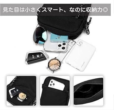 【軽くて疲れない!】重さは約146グラム。軽量コンパクトなので肩にずっと掛けていても疲れません。見た目より収納力があるのも魅力。まちがあるのでスマホとお財布を入れてもまだ余裕あり!ポケットが計3か所あるので中身がごちゃつかず、さっとスマートに取り出せます。