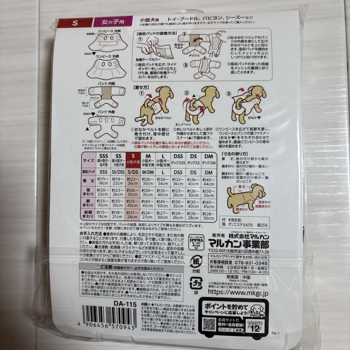 小型犬用、Sサイズ