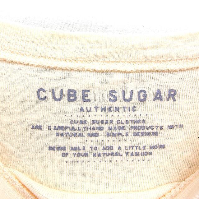 キューブシュガー CUBE SUGAR コットン Tシャツ 長袖 丸首 ロンT M ライトベージュ /FT47 レディース