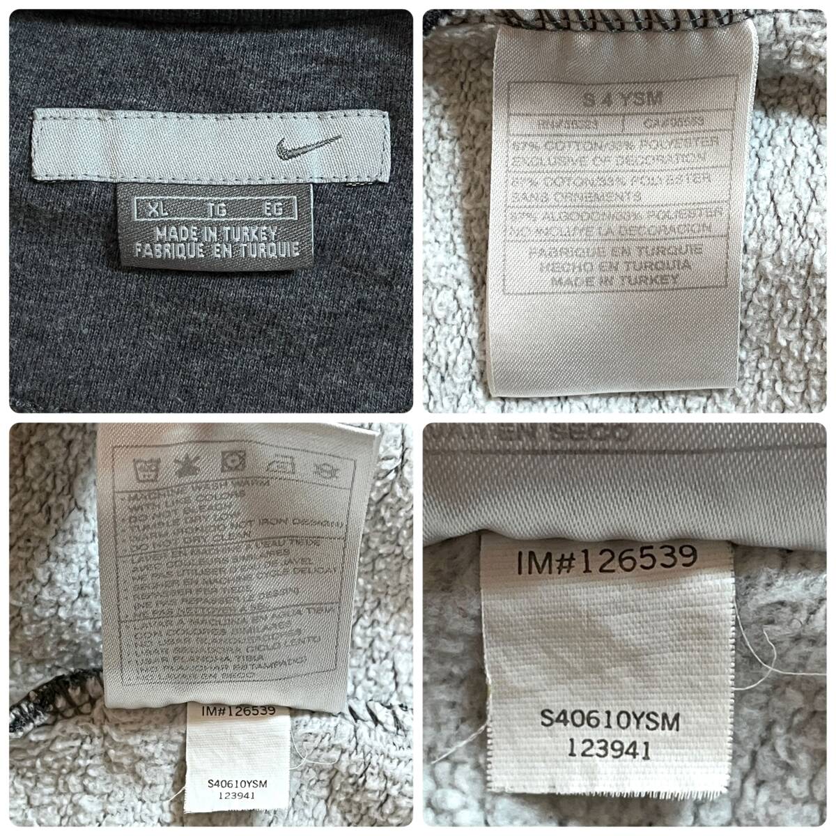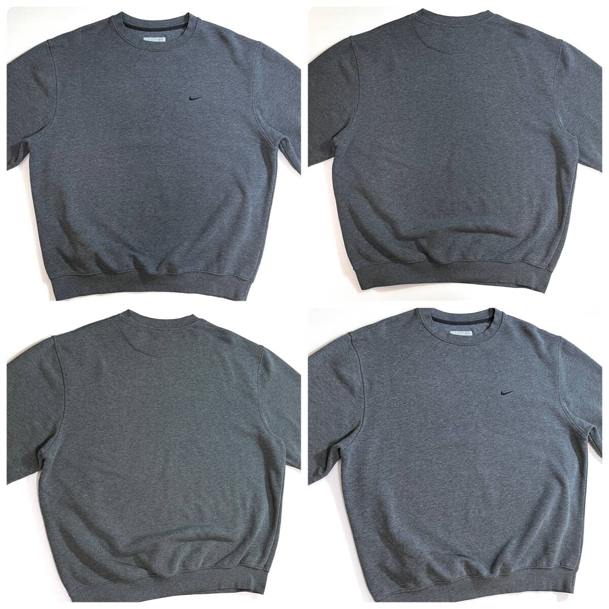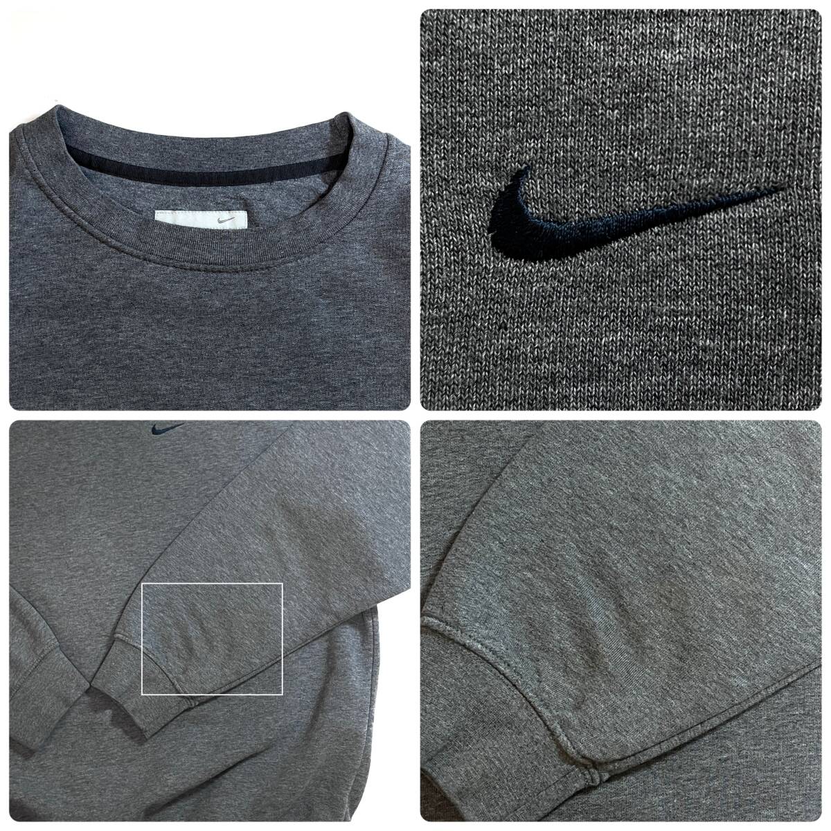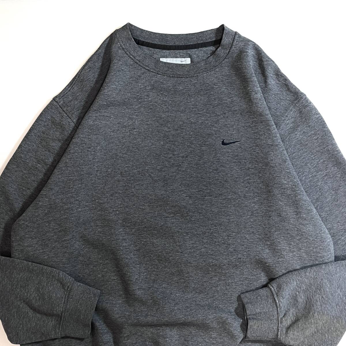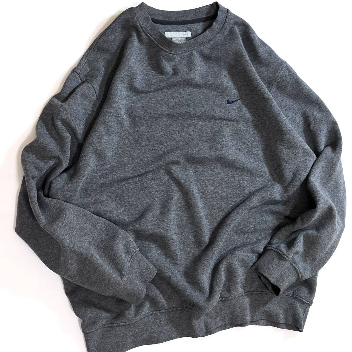 00s NIKE XL ナイキ ワンポイント スウッシュ刺繍ロゴ スウェット 灰色 チャコールグレー ネイビー スウォッシュ刺繍 トルコ製 p25073276
