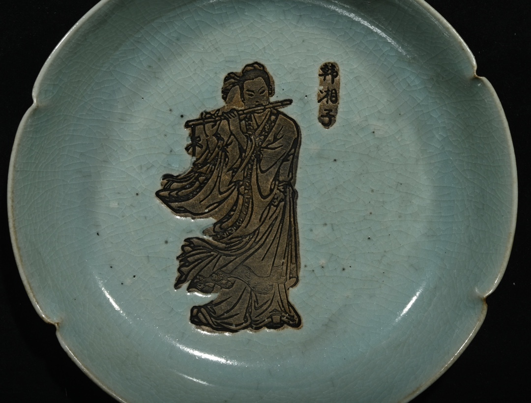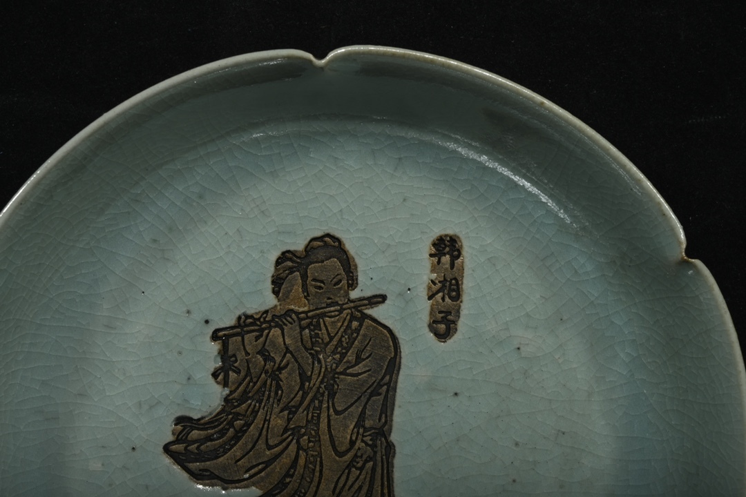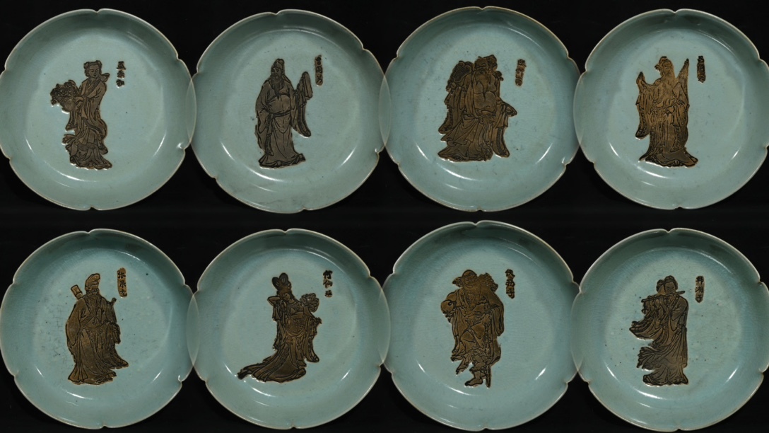 旧 宋代 汝窯 八仙賞皿 一套 唐磁 古陶磁器 陶芸 中国古美術 古賞物 古置物 唐物 S78