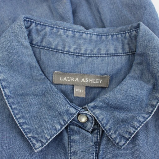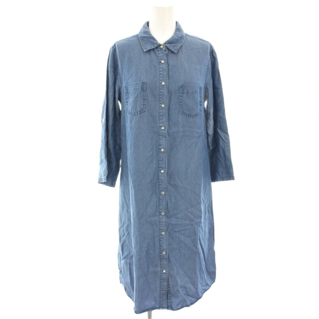 ローラアシュレイ LAURA ASHLEY デニムシャツワンピース ロング ミモレ 七分袖 7 青 ブルー /HN レディース