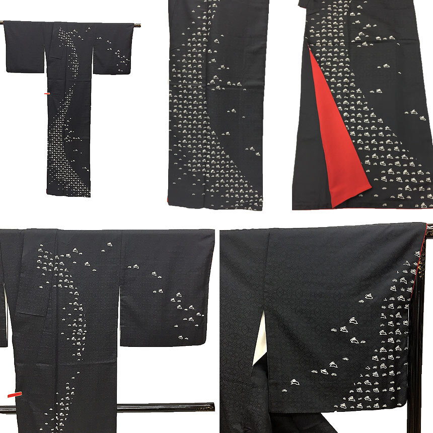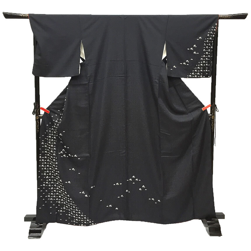| 商品名 | 京やB102 正絹 訪問着 刺繍 伝統工芸品 兎 黒の訪問着 モノトーン 黒×白 相良刺繍 シェニール刺繍 ガード加工済み フォーマルからカジュアルまで 袷仕立て 仕立て上がり 美品 KIMONO 着物 |
