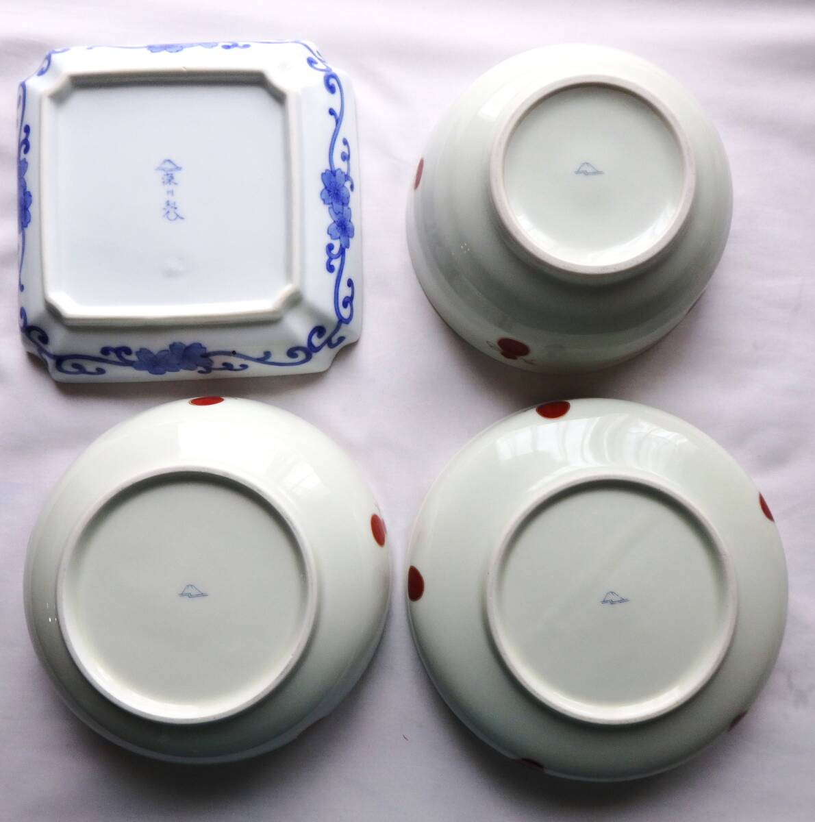 工芸品 アンティーク 深川製磁 4点まとめ セット★角皿 丸形器 プレート 鉢 食器 和食器