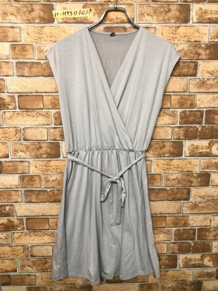 UNIQLO ユニクロ レディース フレンチスリーブ 紐ベルト付き カシュクール ワンピース S グレー