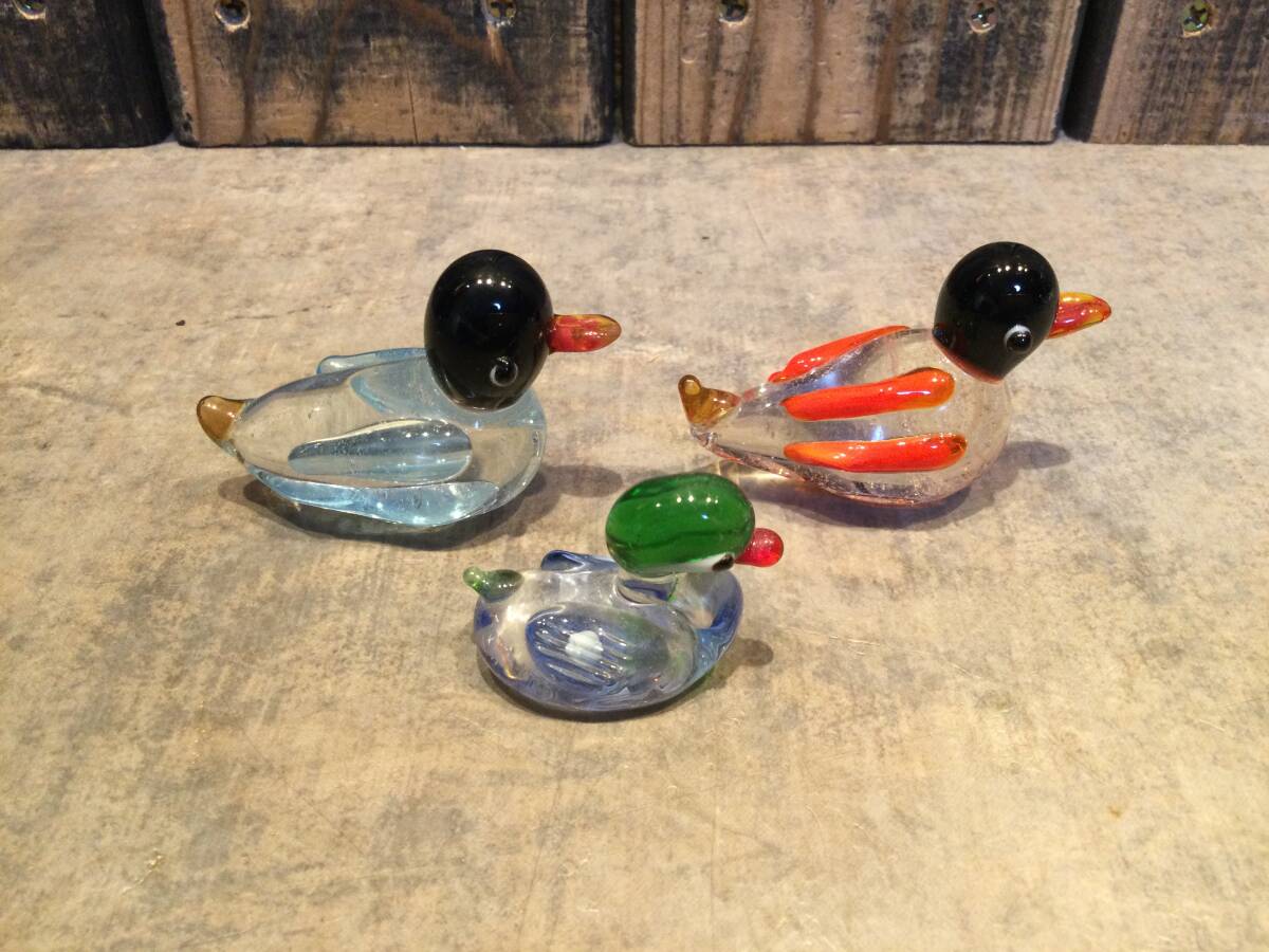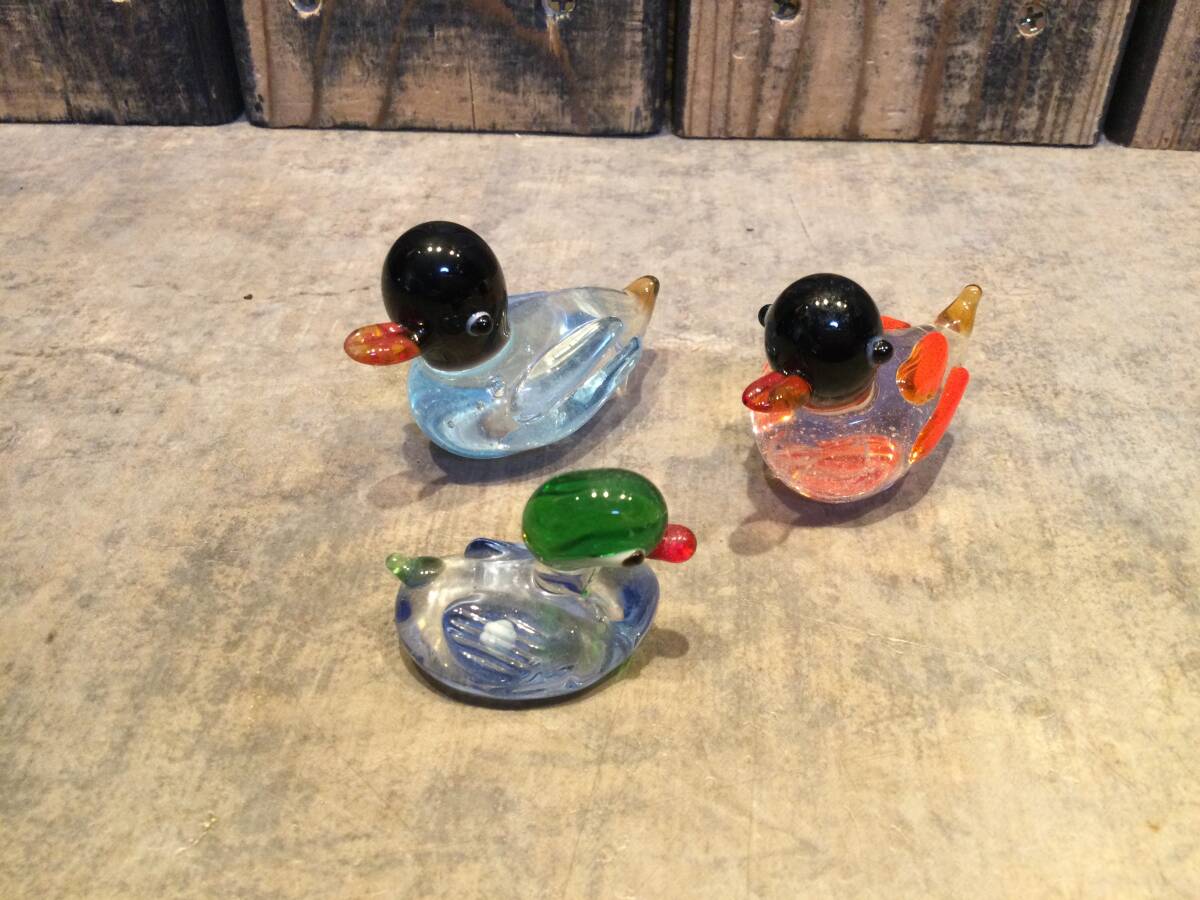 昭和レトロ 当時物 ガラス細工 カモの親子 鳥 動物 置物 ミニチュア フィギア まとめて オブジェ アンティーク ヴィンテージ