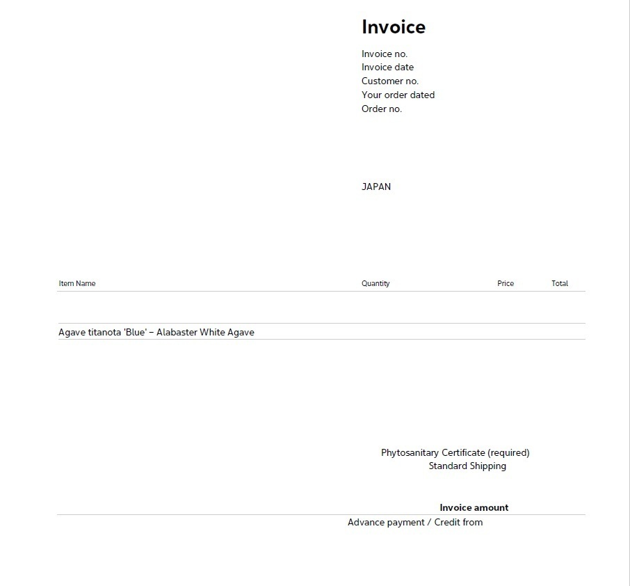 INVOICEも画像の通りございます。