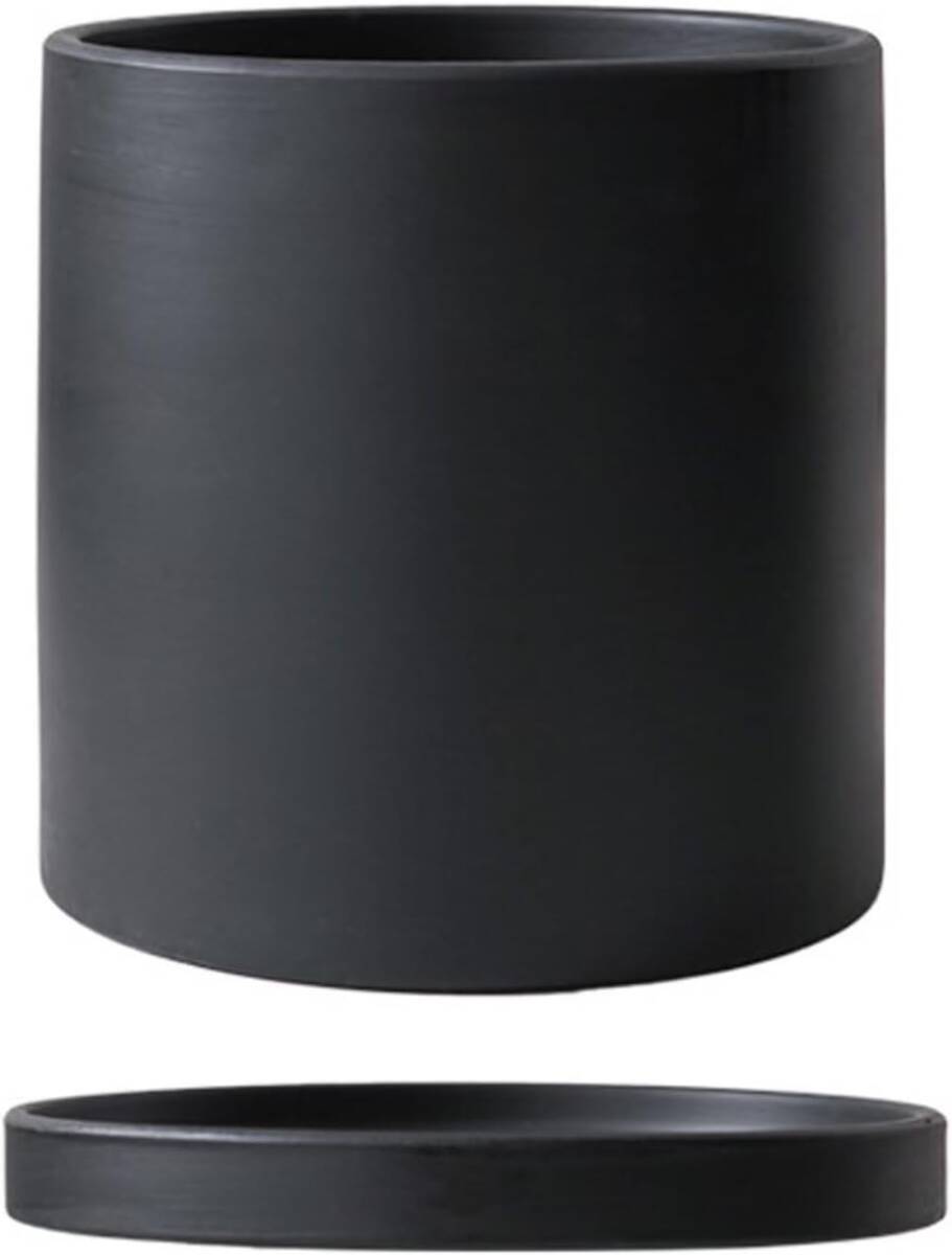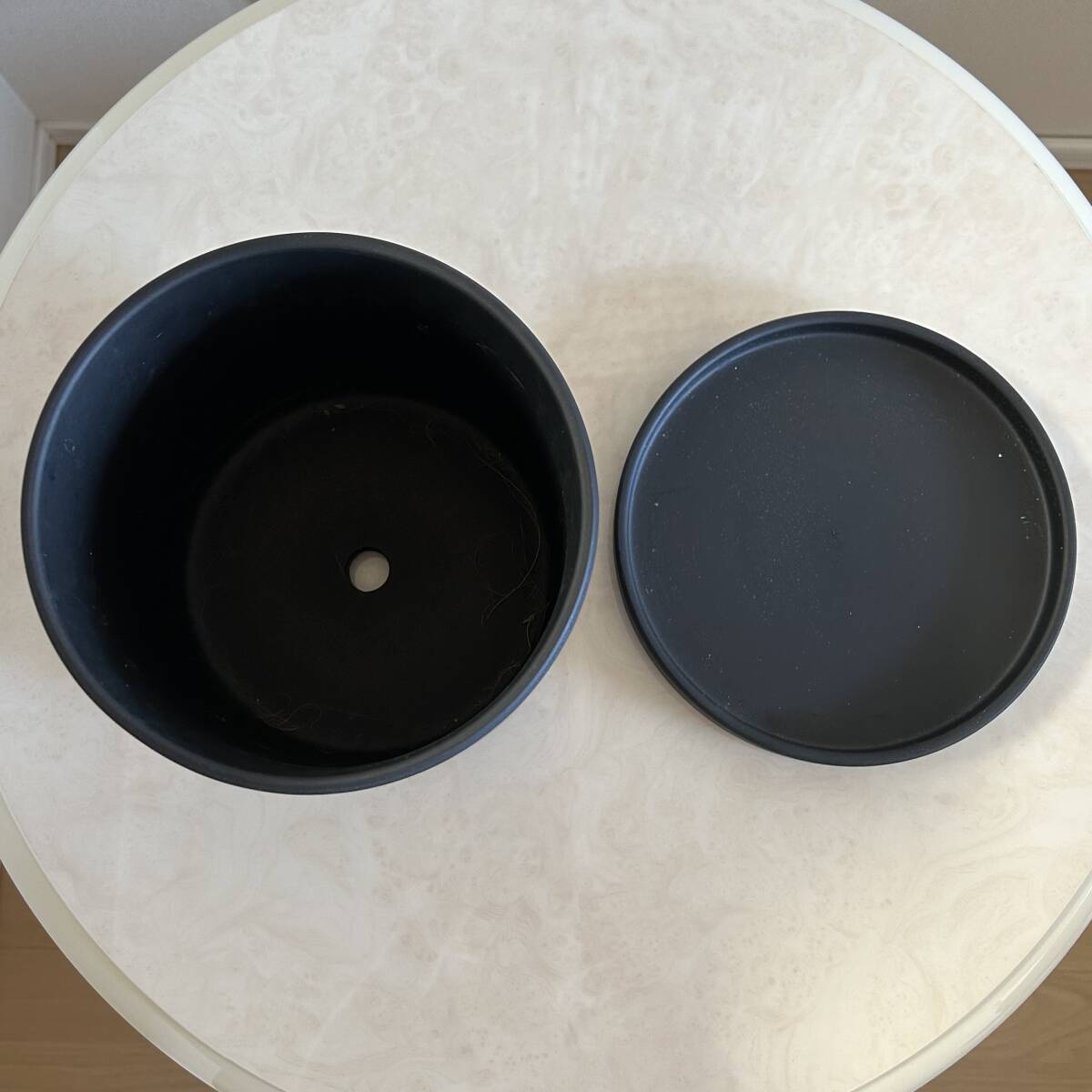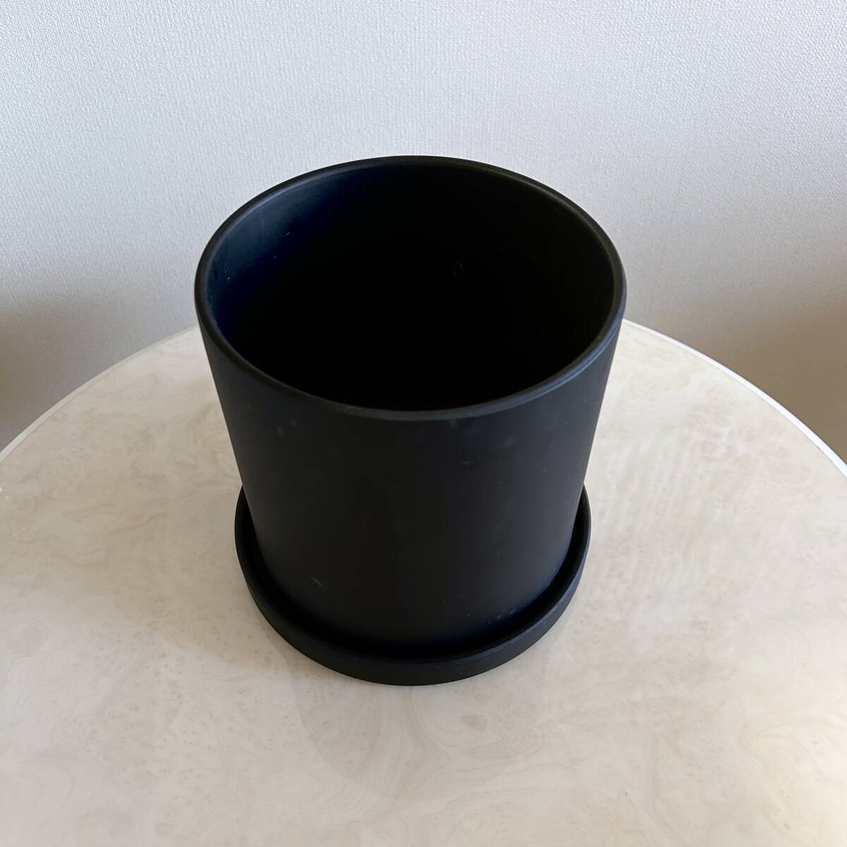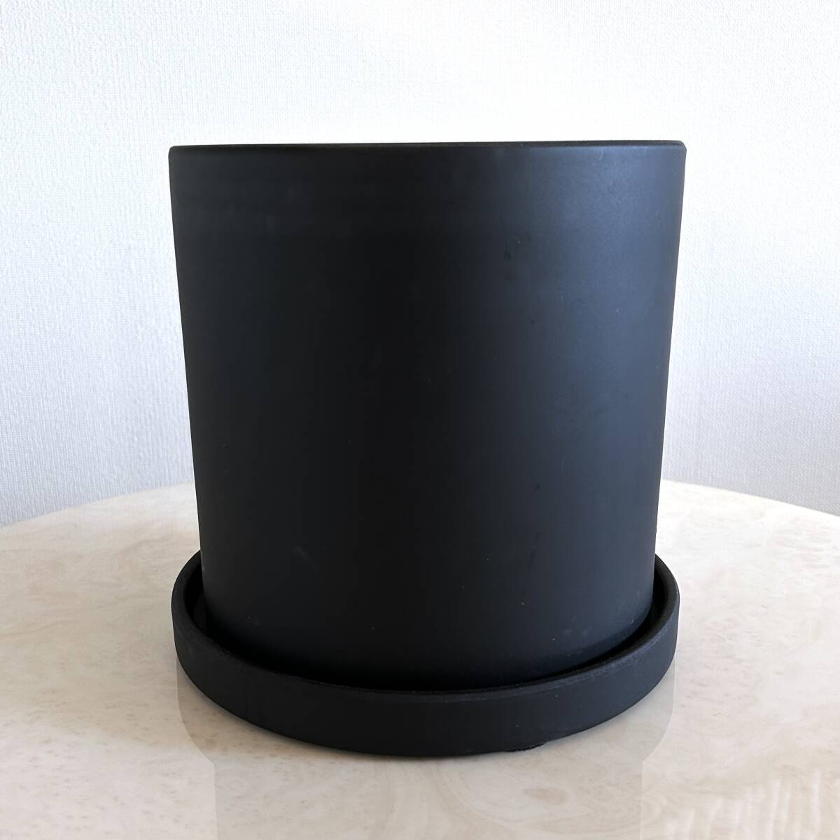 陶器の鉢カバー 18cm 受け皿付き プランター マットブラック 無地 黒 シンプル 観葉植物 室内インテリア 和室にも