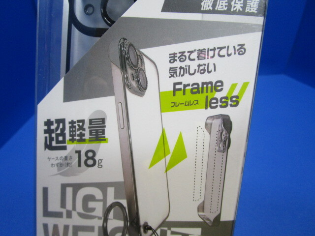 レイアウト iPhone15 ケース リア 極薄 軽量 フレーム無し 放熱設計 カメラ保護 メッキ加工 黄ばみ防止 ストラップ付き カバー ブラック