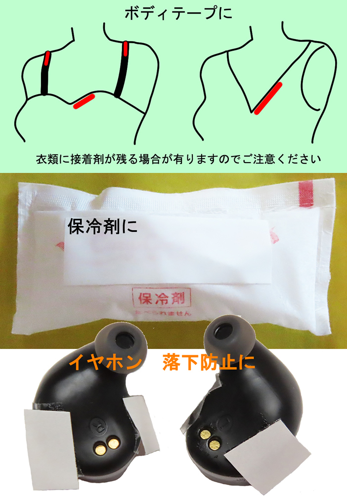 皮膚貼付用両面テープ 3M製品 ISO-10993に基づく、広範囲な安全性が確認されてます。 ●細胞毒性試験 ●急性初期皮膚刺激試験 ●皮膚刺激試験 ●皮膚感作性試験等 |
