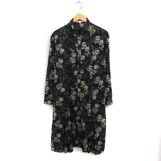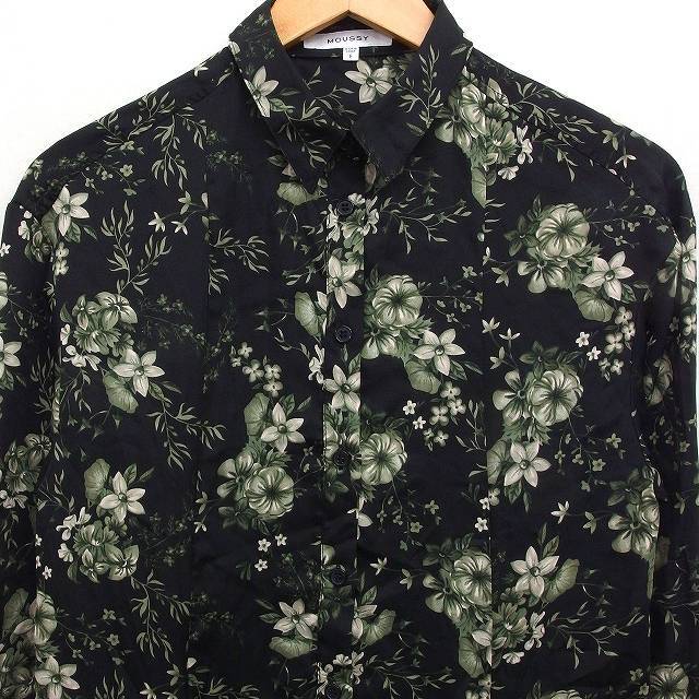 マウジー MOUSSY フラワープリント シャツワンピース 長袖 ロング サイドスリット F ブラック 黒 /FT25 レディース