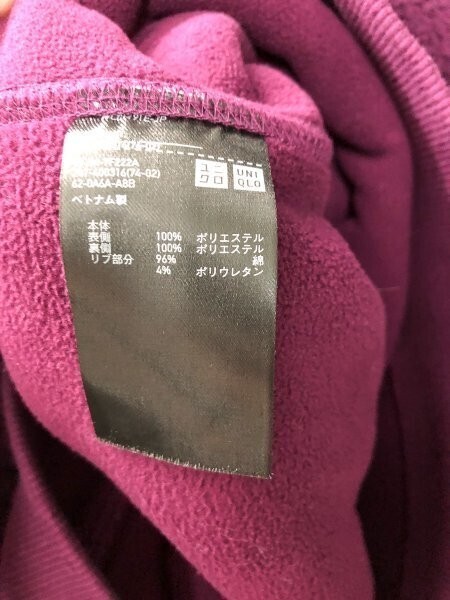 UNIQLO ユニクロ レディース 裏フリース ボア ジップパーカー S 紫 ポリエステル
