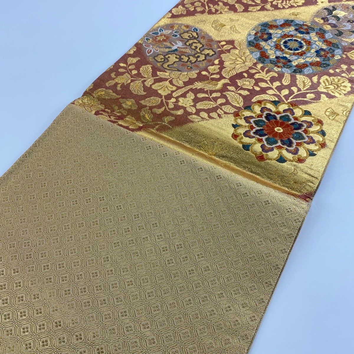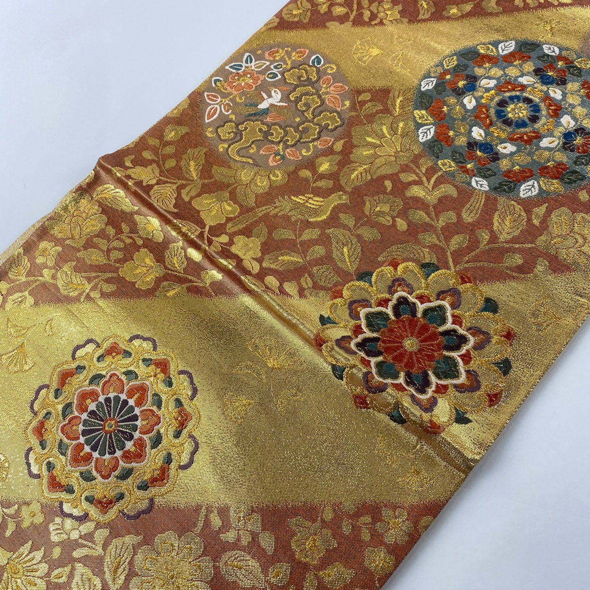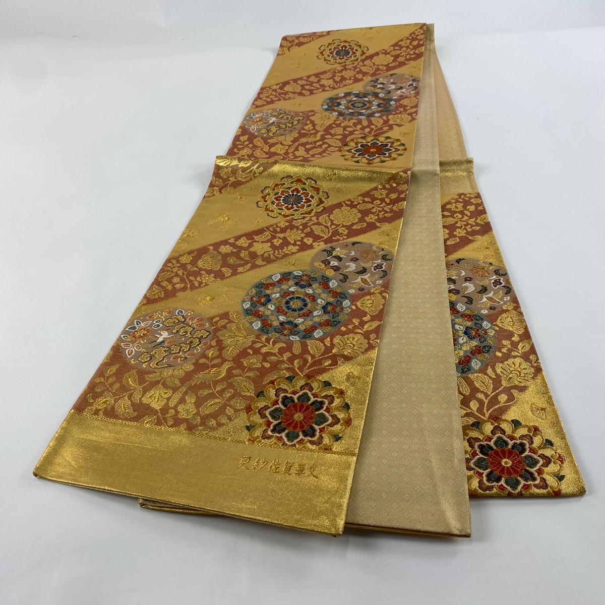 袋帯 美品 秀品 証紙 更紗佐賀華文 金糸 箔 金色 六通 正絹 【中古】 |