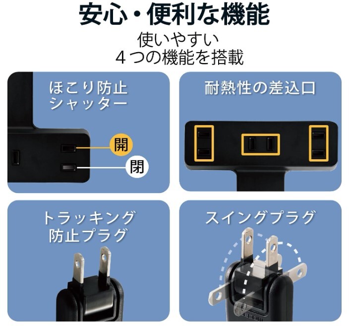 電源タップ 雷ガード 3個口 クリップ ほこりシャッター付(ECT-1430BK)(未使用品×1台)_B