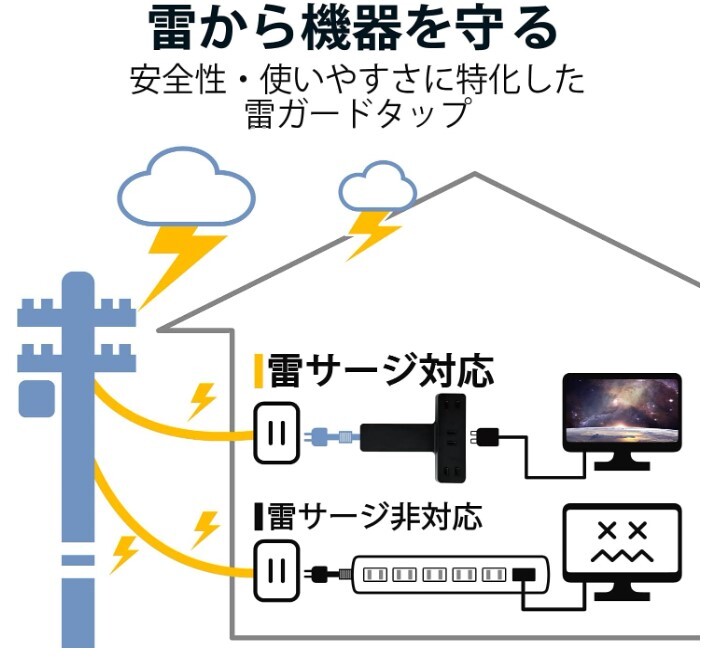 誘導雷による12500Vまでの雷サージを吸収する素子(バリスタ)を搭載し、