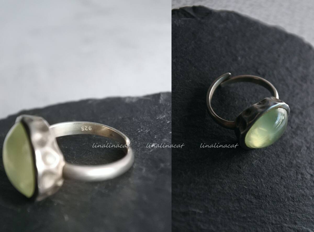 ぷるんと艶感 ジェイド シルバー925 リング フリー ヒスイ 幸運、調和、健康、富、長寿、愛、保護 作家さんから購入しました ジェイドがぷるんとしたみずみずしい艶感のシルバーリングです。 体調やつけたい指に合わせて調整できる嬉しいフリーサイズ。 裏側にSILVER925の刻印がございます。 何度か身に着けた程度で特に大きな傷やダメージなどもなく全体的に綺麗なコンディションです。軽く清掃し水晶で浄化済ですので気持ちよくお使いいただけると思います。 シルバー特有のくすみなどは素材の個性と魅力としてご理解いただければ幸いです。 ぷっくりした艶のあるみずみずしい印象で、インクルージョンやクラックもみられ 可愛らしさの中に天然石の強さのようなものも感じられます。 それぞれの石がもつ歴史です。 ぷっくりしたドーム型ですがそれほど高さはなくあまり邪魔になりません。 ジェイド(ヒスイ) 石言葉 生命 翡翠は、幸運、調和、健康、富、長寿、愛、保護など、多くの象徴的な意味を持ちます。 古代から多くの文化で重要視され、特に中国文化では長寿や幸運の象徴とされ、愛と調和の象徴。 また、翡翠は身につける人に安定感をもたらし、肯定的なエネルギーを提供し、精神的な平和と物質的な富を引き寄せると信じられています。 身を守る力を持つと考えられ、災害や邪悪からの保護を意味することもあります。 これからの季節にさりげなくつけられるシルバーリングはいかがでしょうか。 アンティカ、リンネル、天然石、シルバー、リネン、ジャーナルスタンダード、イエナ スタジオクリップ、シップス、45rpm、キャピタル などお好きな方にもお勧めです。 他にも別シリーズやブレスレットなども出品中です。 | ||