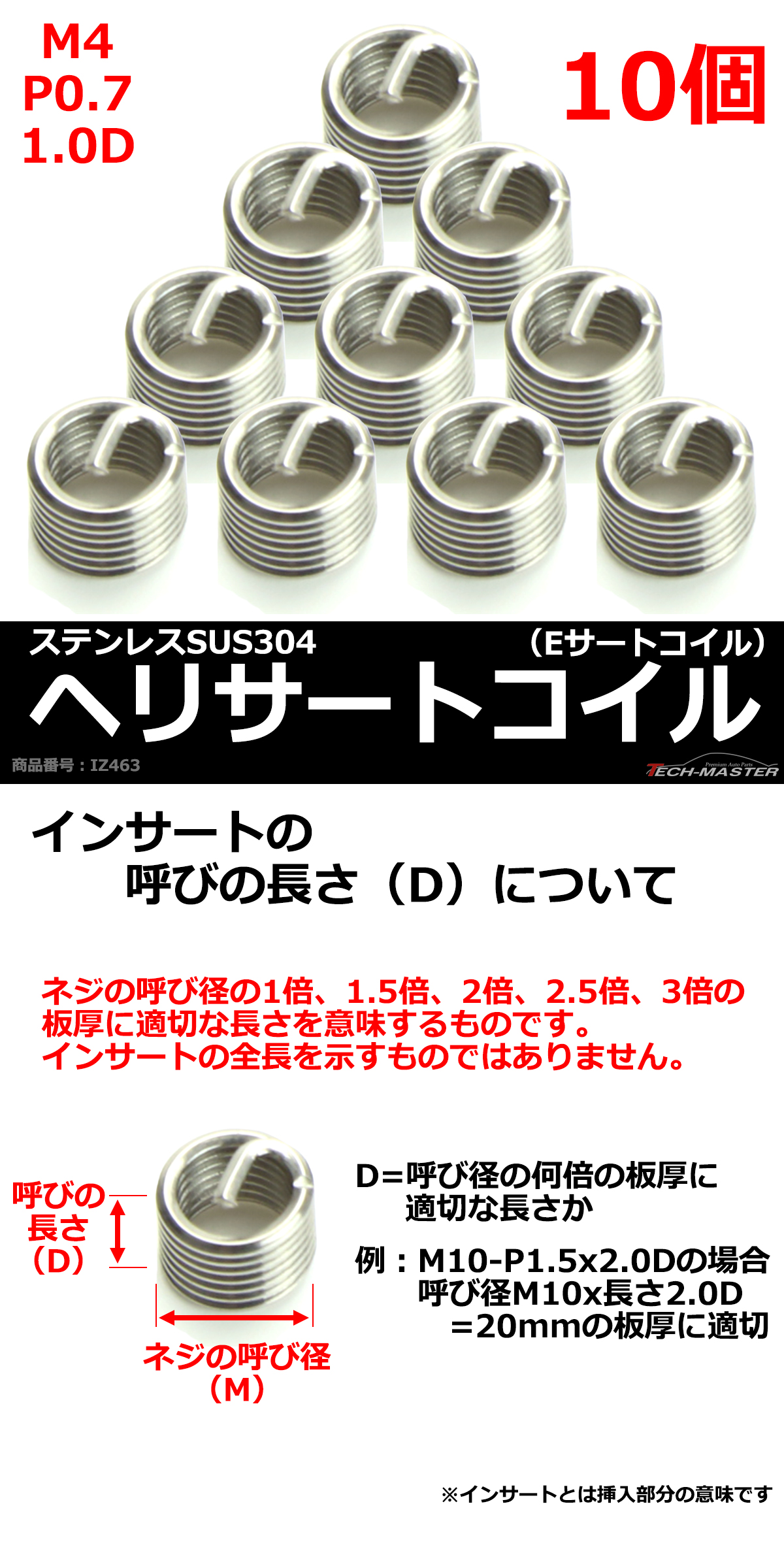 ヘリサートコイル (Eサートコイル) 数量:10個 対象ネジ:M4 P0.7 1.0D(詳細は画像を参照してください) |