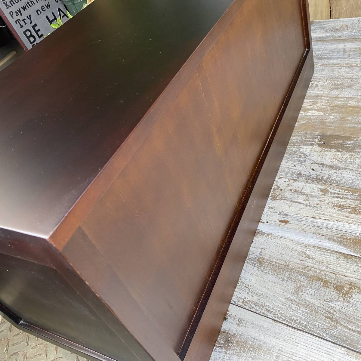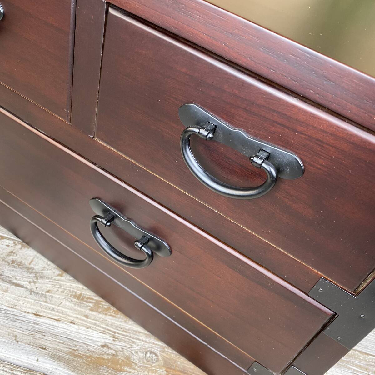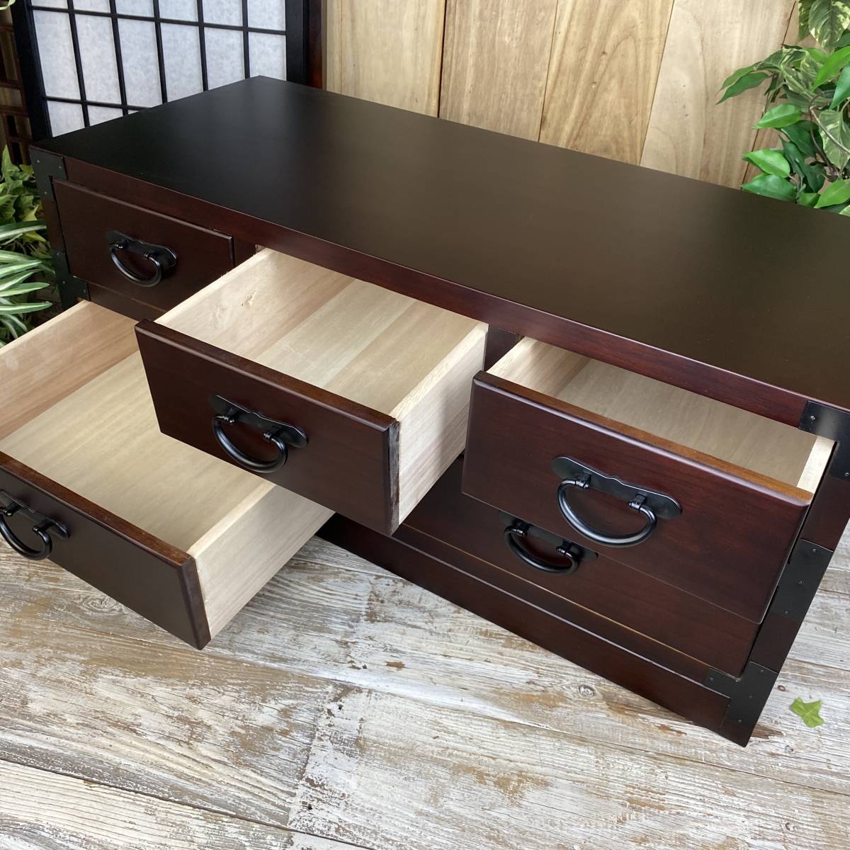 ◆◇商品詳細◇◆ 民芸家具和タンス多引き出し 民芸調の落ち着きのある素敵な和箪笥です。どこか懐かしい和の温かみがあるお品。材質は桐材を使用しているため手触りが柔らかく、調湿性・耐火性・防虫性に優れています。変形などもなく長年愛用していただけます。桐材なので軽くて持ち運び、移動など楽々です。古き良き時代を思い出させるデザインで和室、アジアンインテリアにぴったりです。黒塗りの金具が高級感があり、お部屋に置くだけで存在感抜群!お色は飽きのこない濃い目のブラウンで重厚感を演出しています!人気商品が今だけこの価格!他では買えない民芸商品をぜひこの機会に。 【商品状態説明】 小キズあり、まずまずの美品。 完成品になります。 ※こちらの商品は、現品画像ではありません。在庫の中から丁寧に検品後、発送いたします。 【サイズ】 横幅:80㎝ 奥行:35㎝ 高さ:34.5㎝ 引き出し内寸小:21㎝×30㎝×9㎝ 引き出し内寸大:33㎝×30㎝×9㎝ 桐材 【カラー】 ブラウン 【参考価格】 ¥18,000 | ◆◇発送方法◇◆ ●送料は基本無料ですが、沖縄・離島などにお住まいの方はご負担ください。 (沖縄・離島の方はメールにてご連絡いただければ、送料をお知らせいたします。) ●ヤマト運輸・佐川急便・第一貨物のいずれかにて配送いたします。 (運送会社の指定はできません。ご了承ください。) ●日時・時間指定のある方や、お問い合わせ(追跡)番号をご希望の方は取引連絡の際にお知らせください。 | |