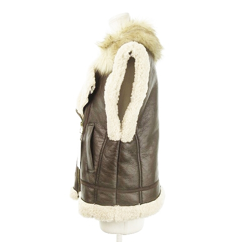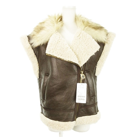 未使用品 ピンコ PINKO フェイクレザーボアベスト ジャケット フェイクファー オーバーサイズ S 茶 ブラウン /AH25 レディース