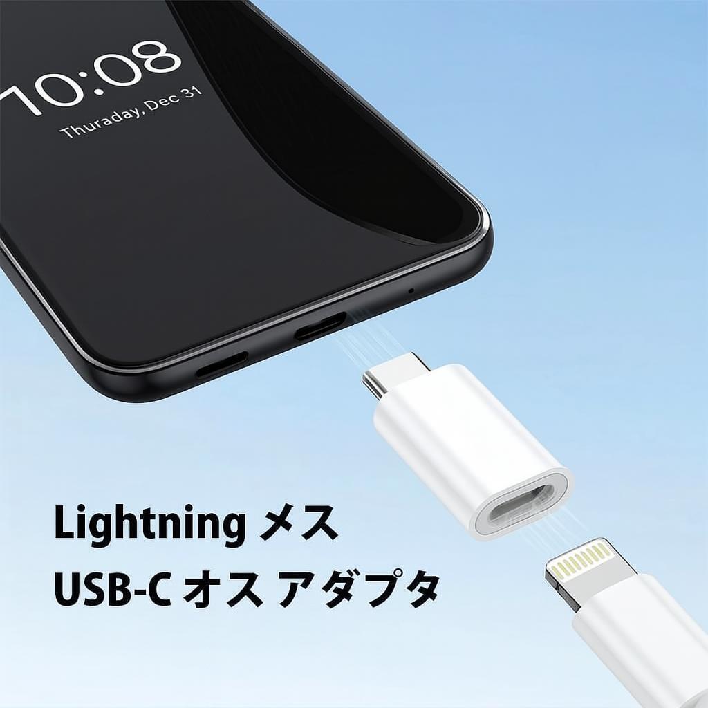 この変換アダプタがあれば、Lightningケーブル1本でiPhone 15/16、Galaxy、Pixel、iPad、MacBookなどのUSB-C端子機器も充電できます。