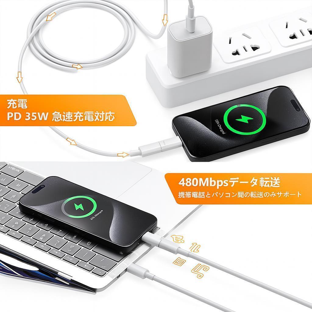 【Lightning to USB-C 変換アダプタ 35W, 480Mbps 】
