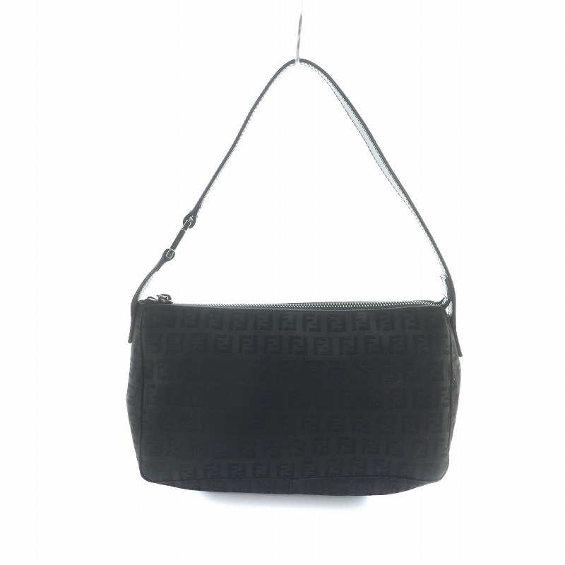 フェンディ FENDI ワンショルダーバッグ ハンド ロゴ ズッカ柄 レザー キャンバス 黒 ブラック /MQ ■OH レディース