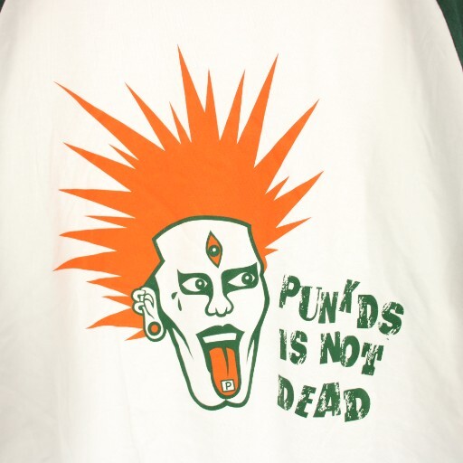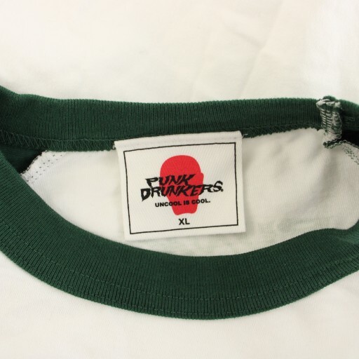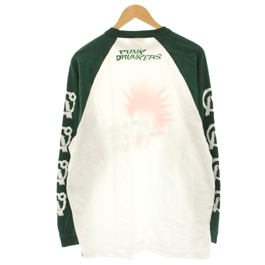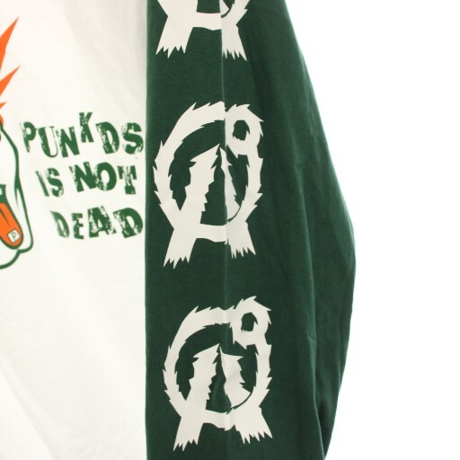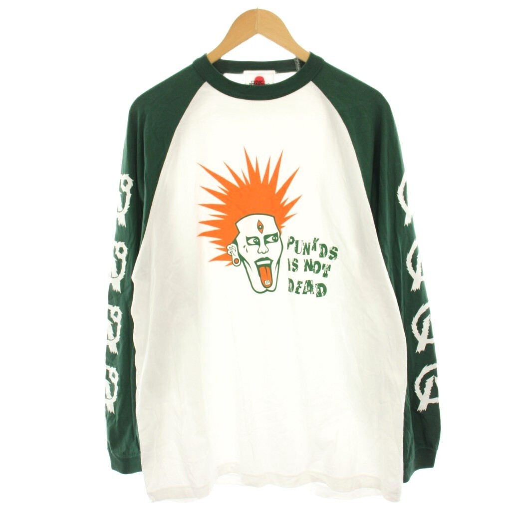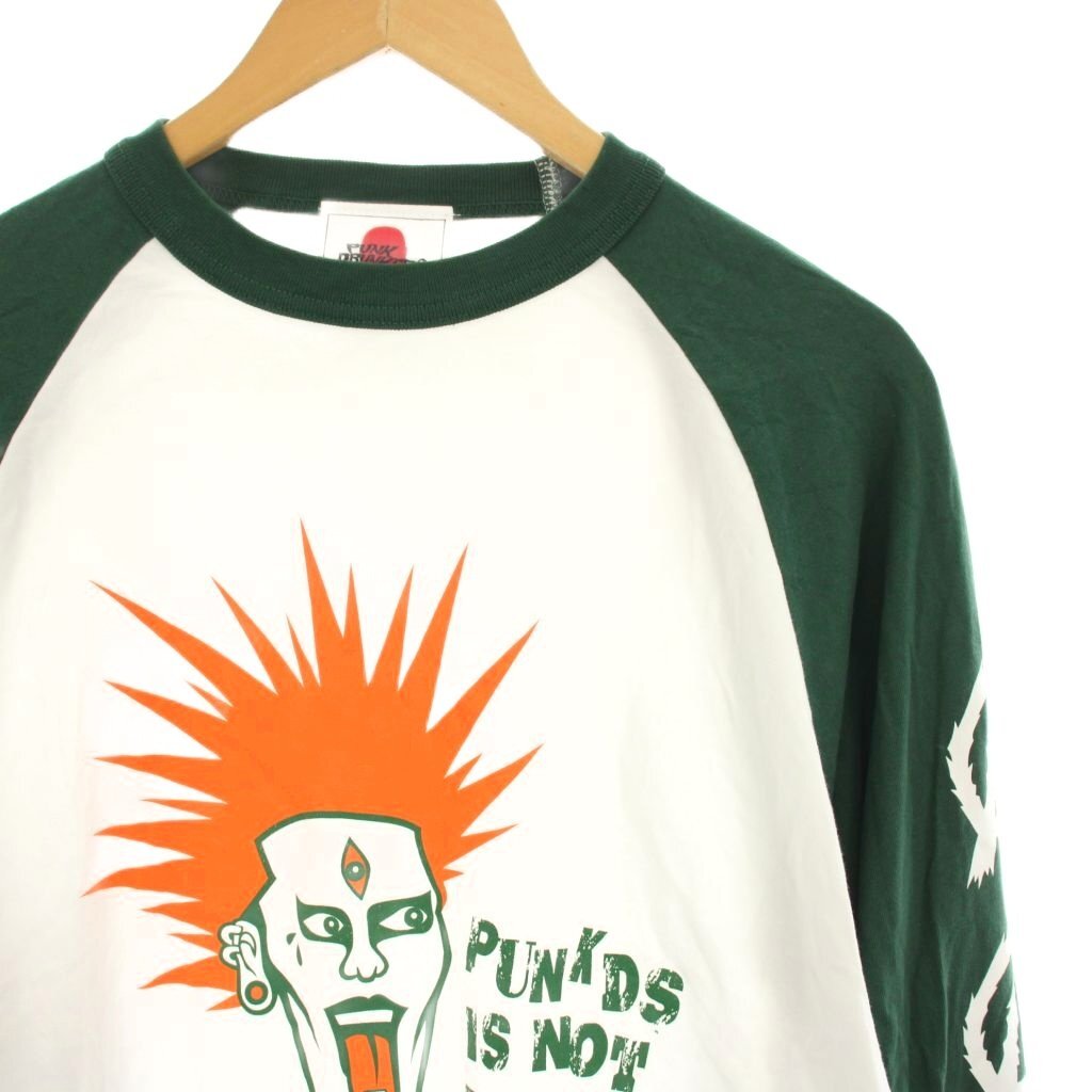パンクドランカーズ PUNKDS IS NOT DEADラグランロンTEE Tシャツ カットソー プリント 長袖 XL 緑 グリーン 白 ホワイト