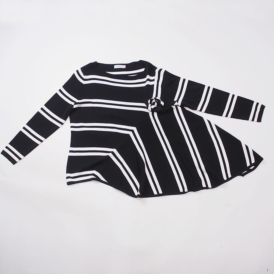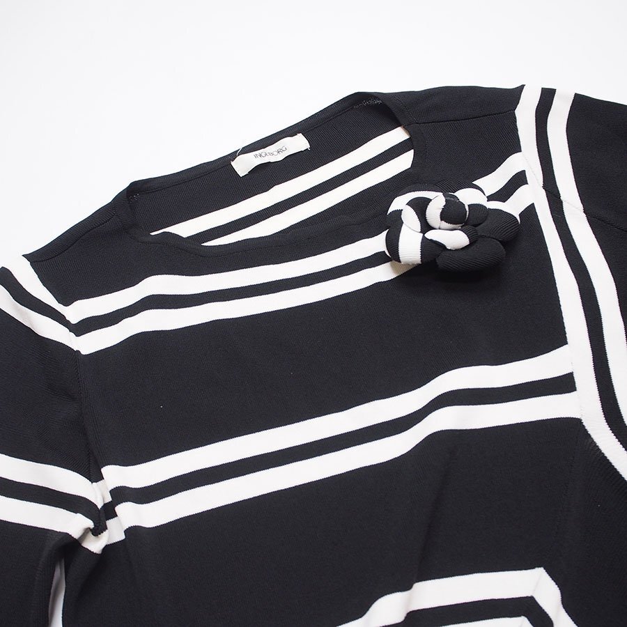 インゲボルグ 黒 ボーダー 変形 ニット セーター コサージュ付/サイズ11号/発売時の定価34560円/I7A31