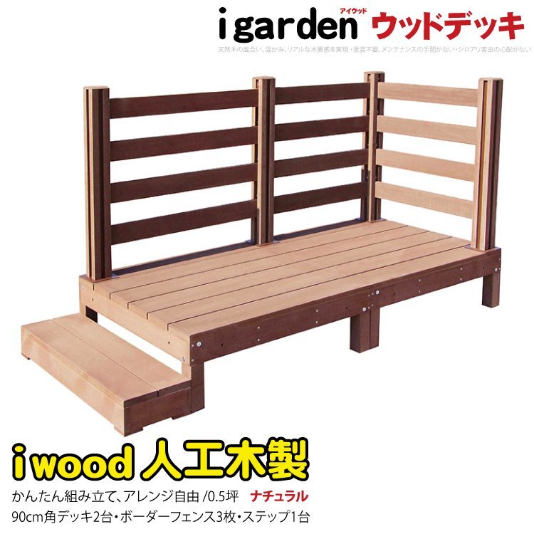 igarden アイウッドデッキ 6点セット(デッキ2・ボーダーフェンス3・90ステップ1)0.5坪 ナチュラル 樹脂製 テラス DIY 庭 -2d3bd1s