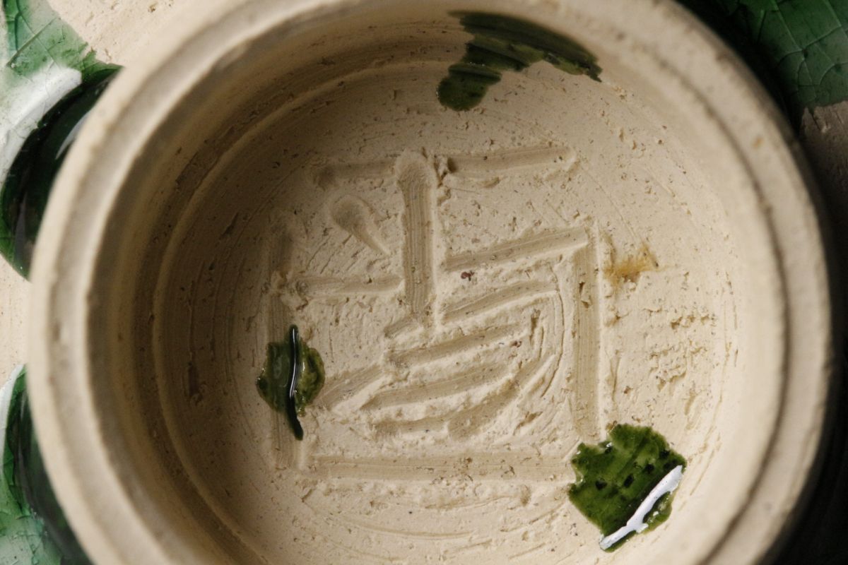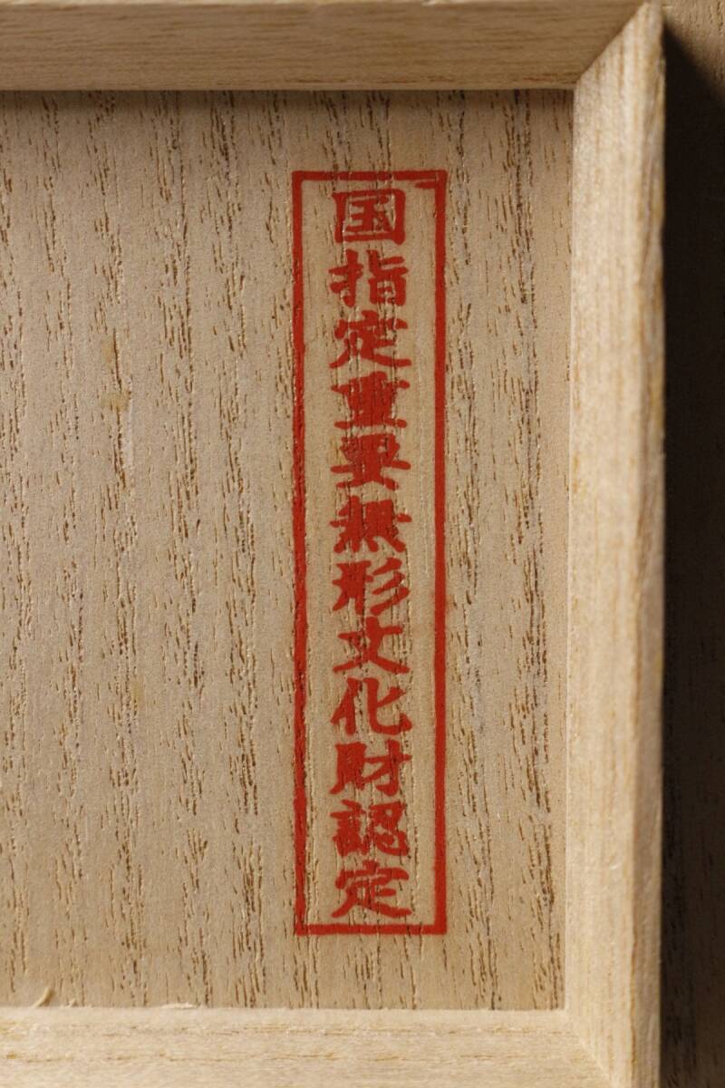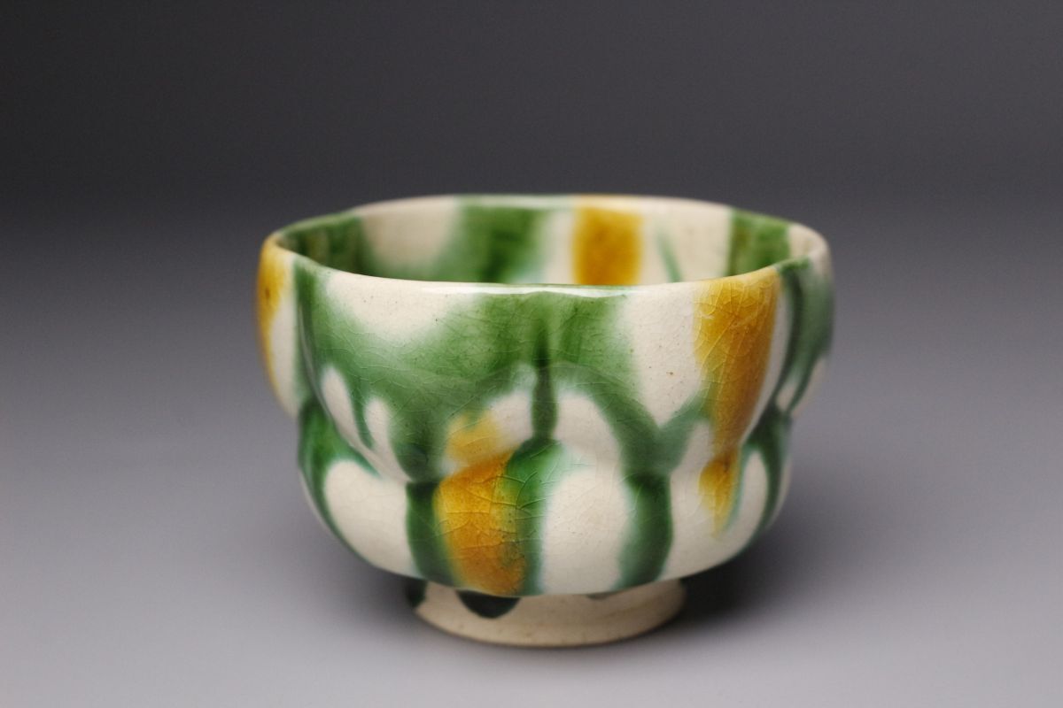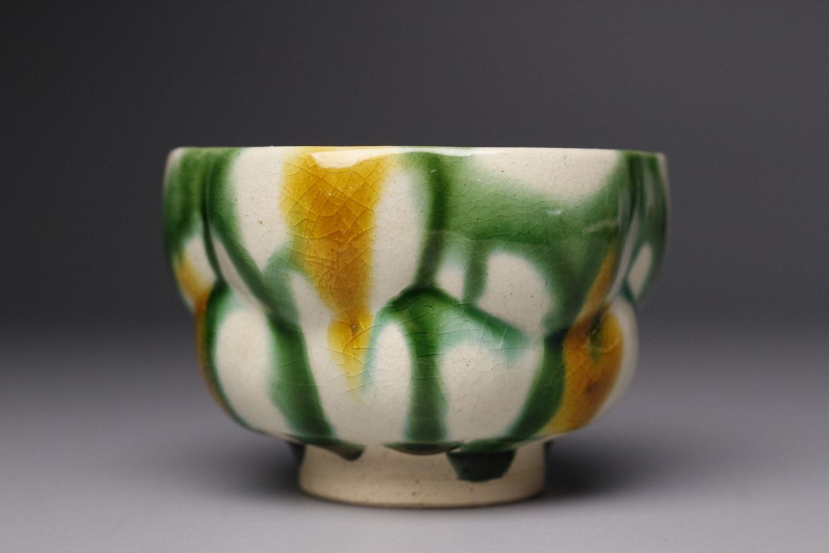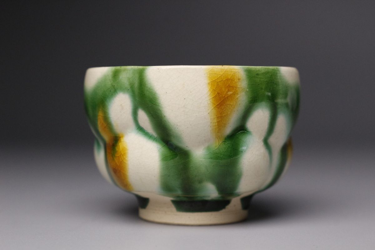 人間国宝 加藤卓男による奈良正倉院の御物を再現復元した作品 三彩花形酒杯のご紹介です。 ふっくらとした花形の可憐な意匠と 緑と黄色を基調とした爽やかな色彩が目を惹く 人間国宝に認定された代表的技法「三彩」の作品です。 色彩豊かな酒杯の鮮やかな釉薬の深い表現と 無色の釉薬がかかった硬質な陶器の肌地は素地とのさりげない対比も心地良く 釉薬の溜りや見事な貫入、360度何処から見ても鑑賞応えのある素晴らしい作品となっております。 加藤卓男による素晴らしい逸品を この機会に是非お手元にてご堪能ください。 作家略歴 1917年 9月12日、五代加藤幸兵衛の長男として生まれる。 1961年フィンランド工芸美術学校修了。 1963年第6回日展で特選北斗賞受賞。 1973年イラン・パーレヴィ王立大学付属アジア研究所留学 およびペルシア古陶発掘調査に参加。 1980年宮内庁より正倉院三彩の復元制作を委嘱される。 1983年岐阜県重要無形文化財に認定される。 1986年トルコ・トプカプ宮殿美術館にて個展。 1988年紫綬褒章受章。 1992年伊勢神宮の御神宝「陶猿頭形御硯」を制作。 1995年国指定重要無形文化財保持者(人間国宝)に認定される。 1996年岐阜県名誉県民の称号を受ける。 2005年1月11日、永眠。