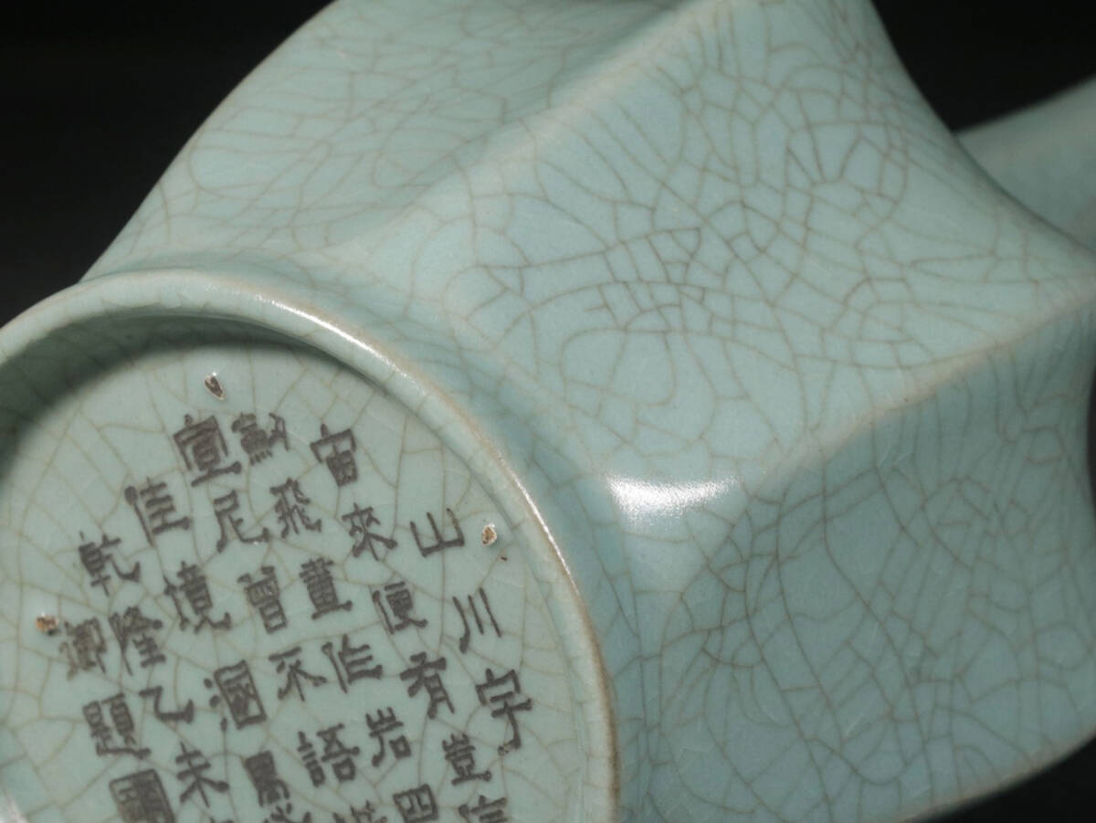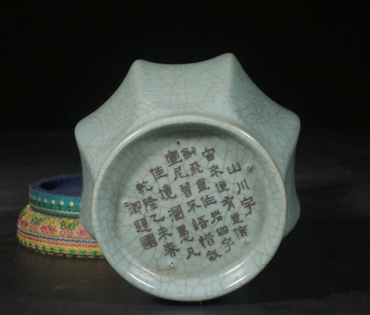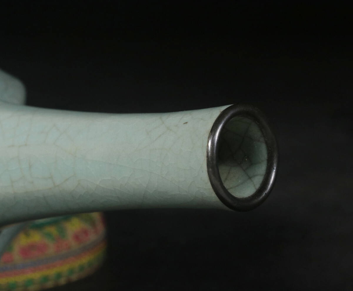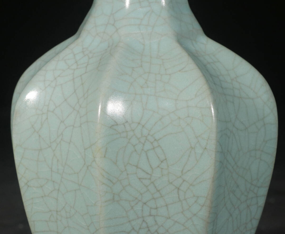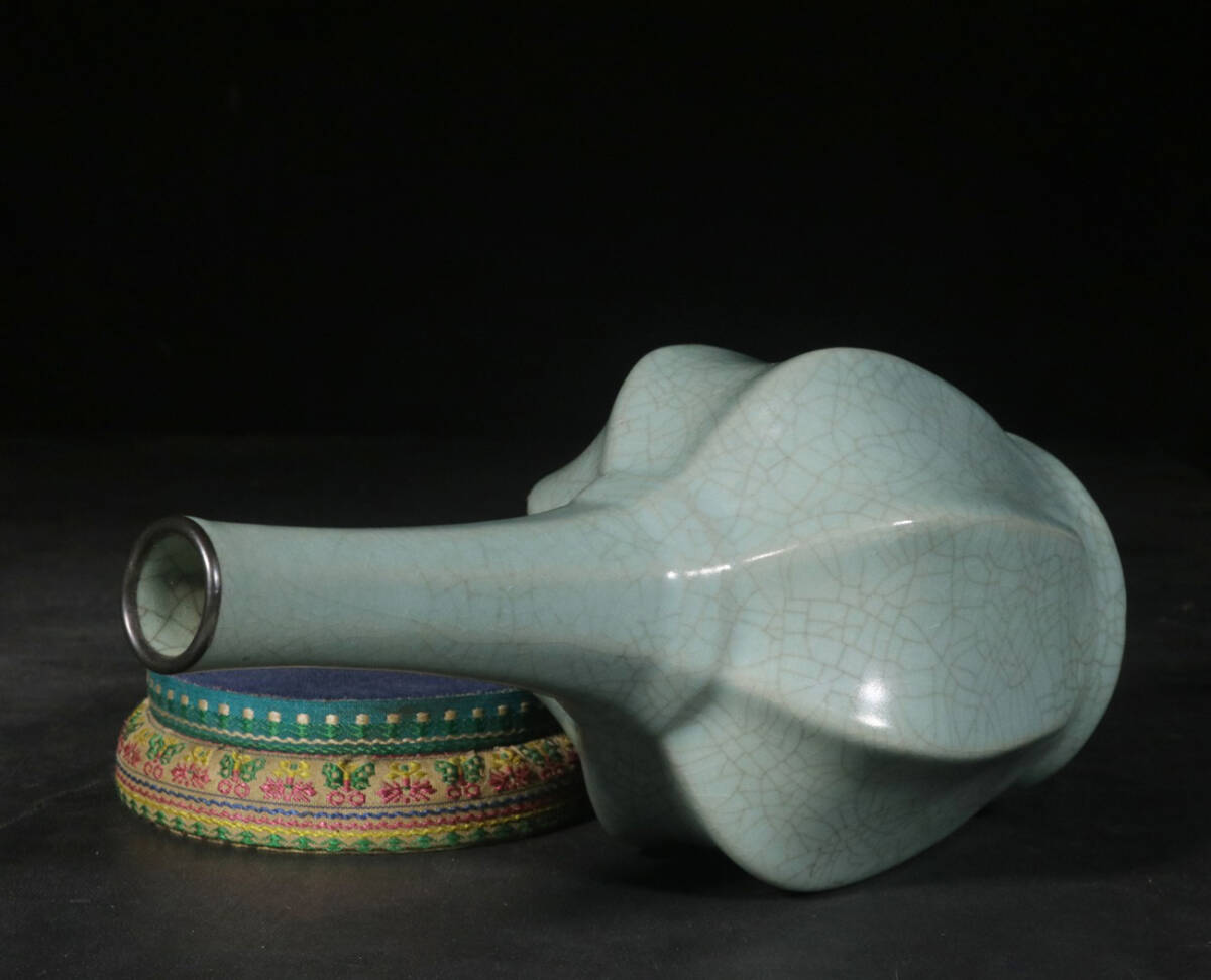 ◆御泓軒◆『宋朝時代 陶磁器 汝窯天青釉包銀口瓜稜紋長頸瓶・箱付』極細工・古賞物・中国古玩・中国古美術