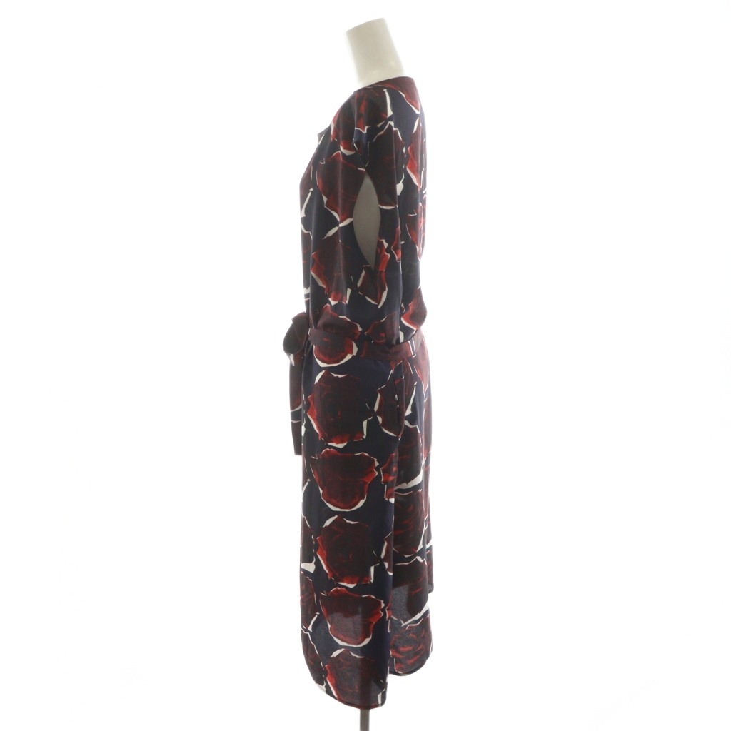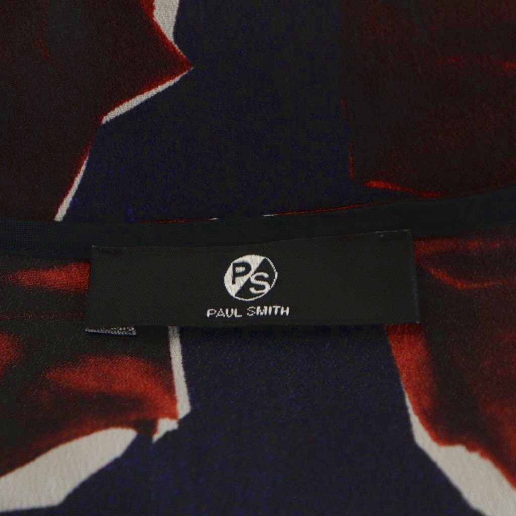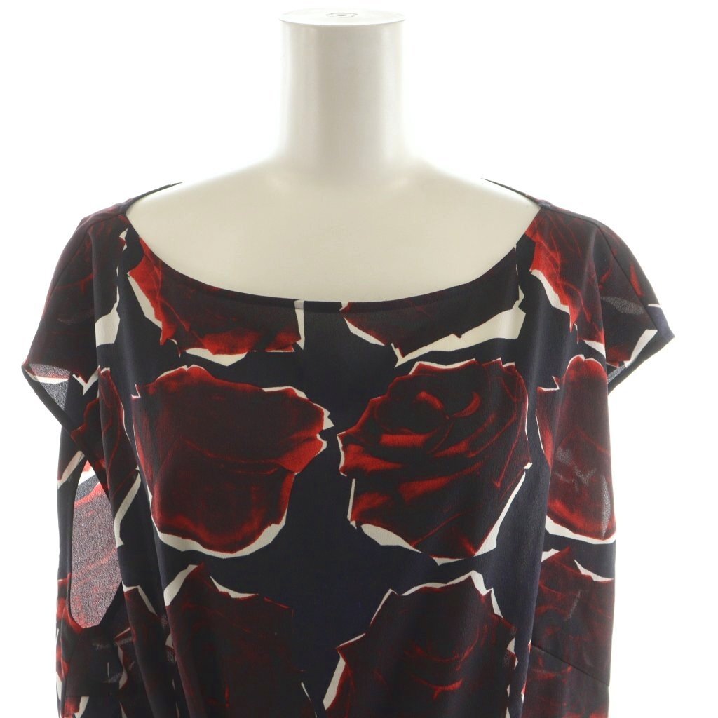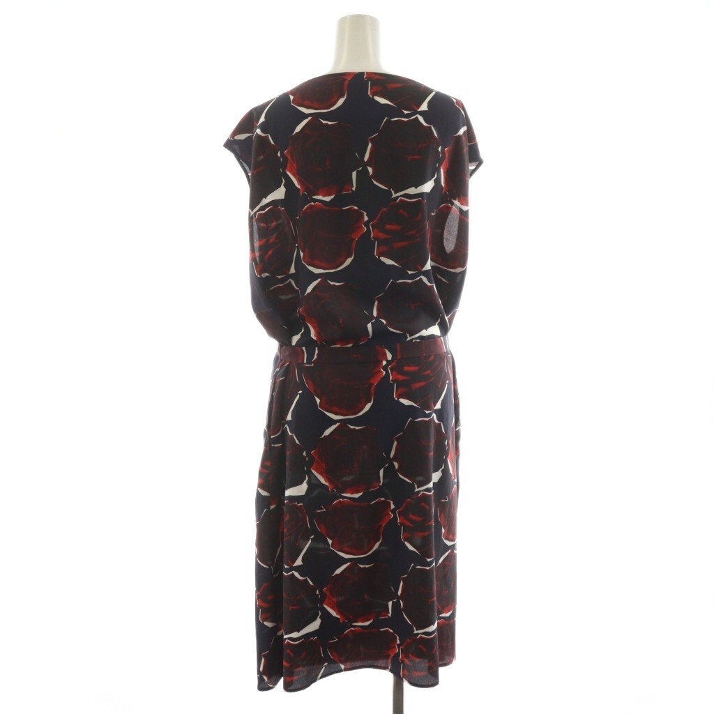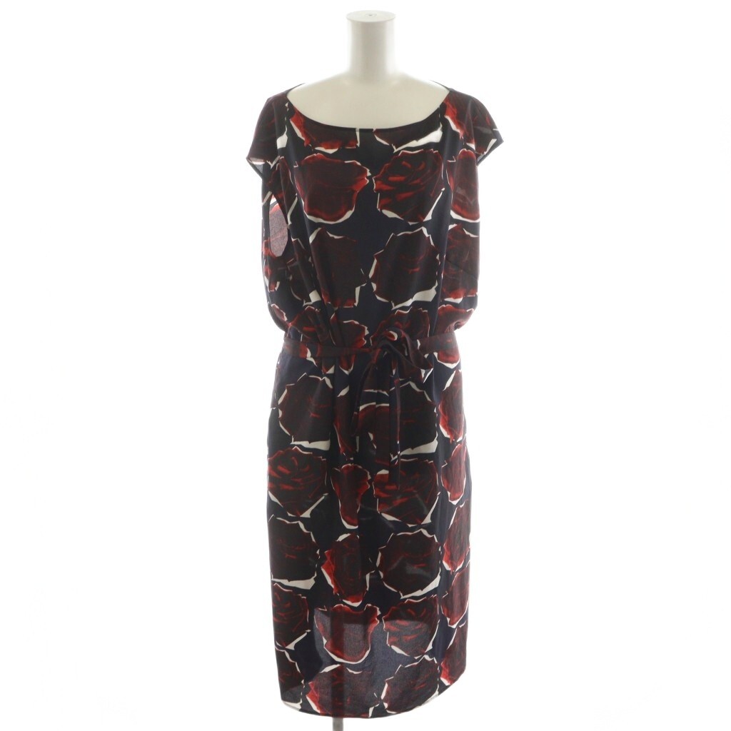 ピーエスポールスミス PS Paul Smith ワンピース ひざ丈 ノースリーブ 薔薇柄 リボン付き 46L 紺 ネイビー 赤 レッド