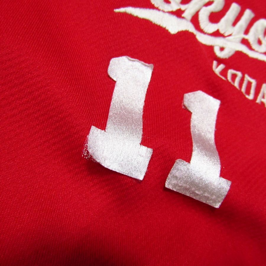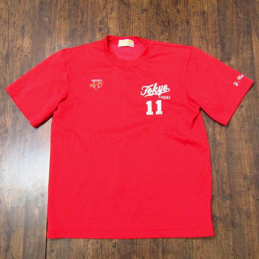 ■ ベーT サイズO デサント製 です。 袖に記名刺繍、胸の番号剥がれ、擦れ、汚れ着用感があります かなり古いものです |