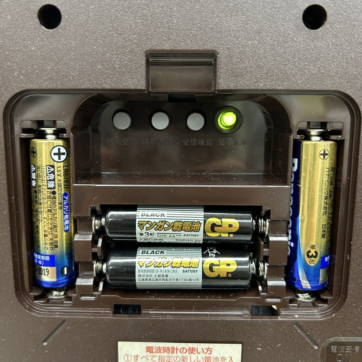 機能: 電波時計なので時刻合わせの手間がなく、常に正しい日本標準時刻に自動修正されます。また、電池残量が少なくなると秒針が12時の位置で停止し、電池交換時期を知らせる機能も搭載されています。