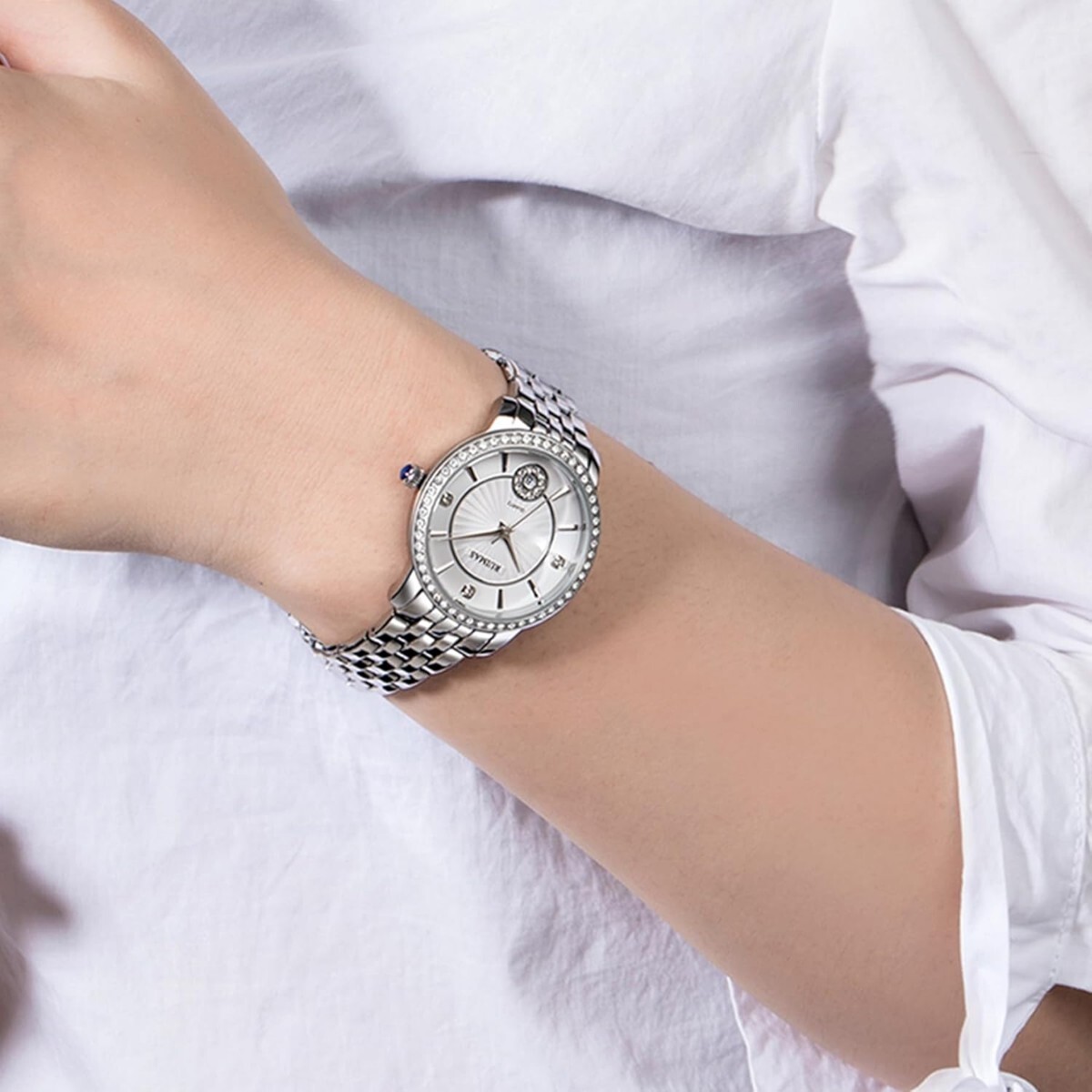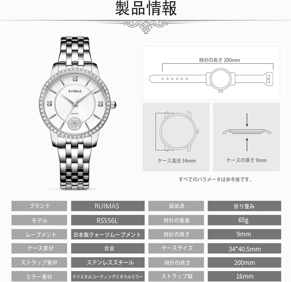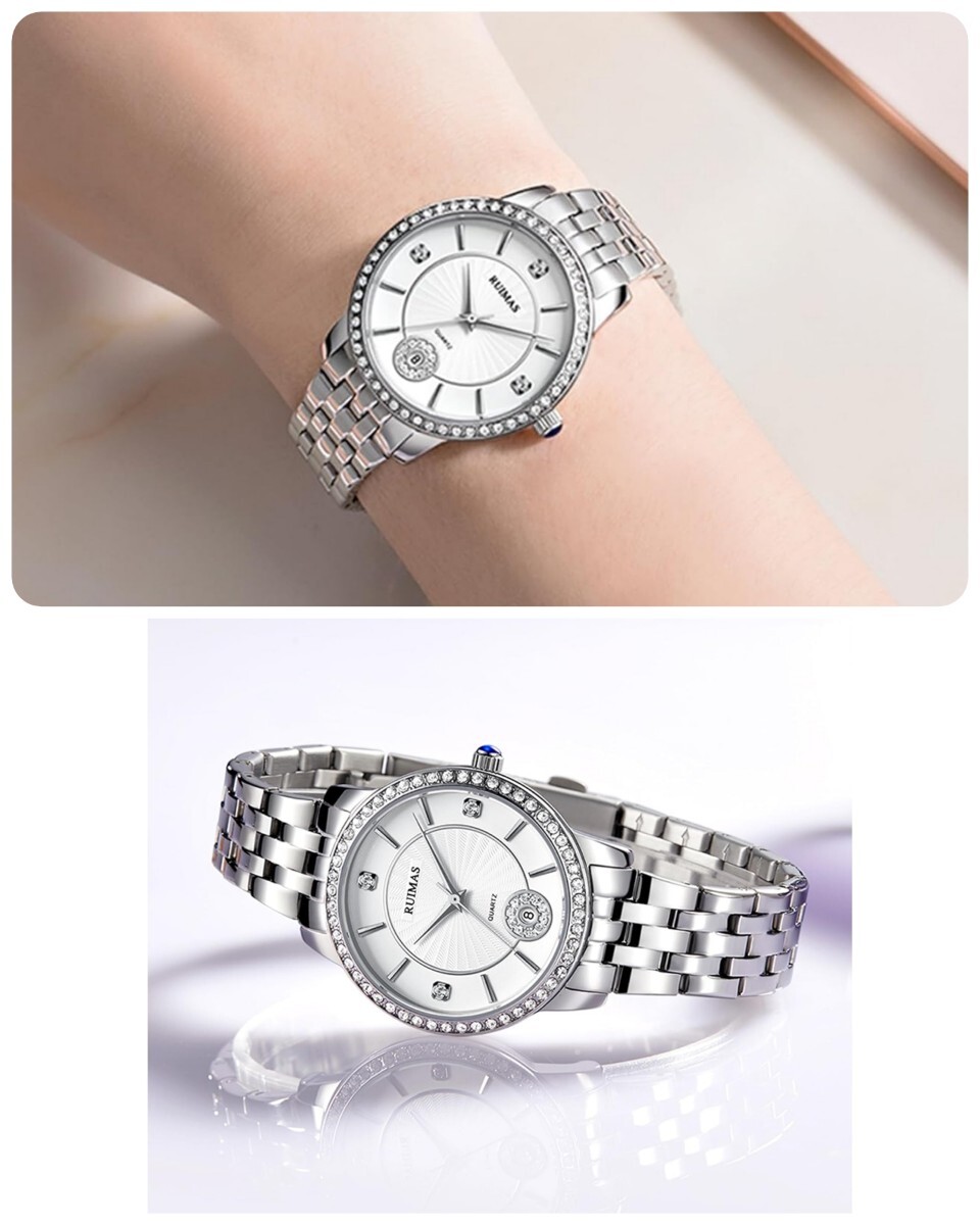 ●RUIMAS のファッションウォッチは単なる時計という道具ではなく、腕元に飾る贅沢なアート作品です。精巧な文字盤には、輝くダイヤモンドが埋め込まれていたり、独特な模様が施されており、貴金属のバンドと相まって、尊貴さを余すところなく表現しています。これを身につけると、瞬間にグレードアップし、宴会に出席したり、街を歩いたりする際にいつも目の焦点となります。それは素敵な瞬間を載せ、高いエモーション価値を与え、あなたが優雅にすべての素敵な時を過ごすことを伴っています。