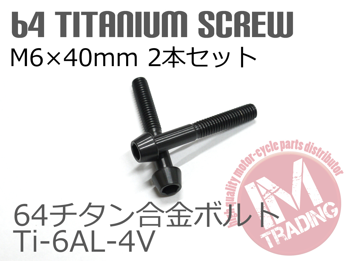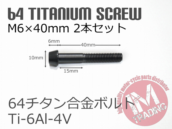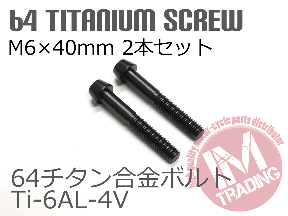 64チタン合金ボルト M6×40mm P1.0 2本セット テーパーキャップ ゆうパケット対応 ブラック 黒 Ti-6Al-4V