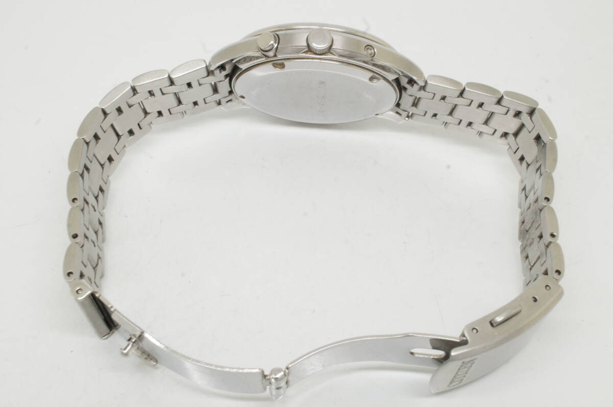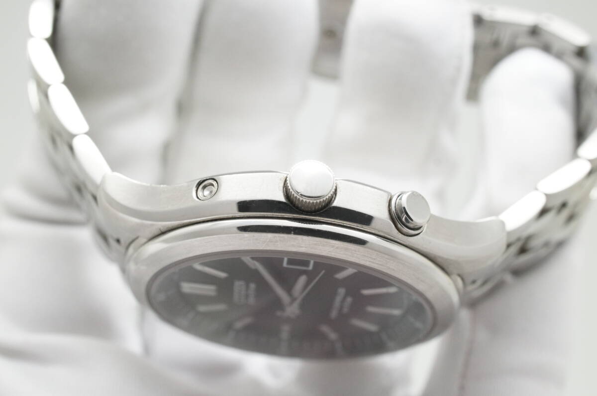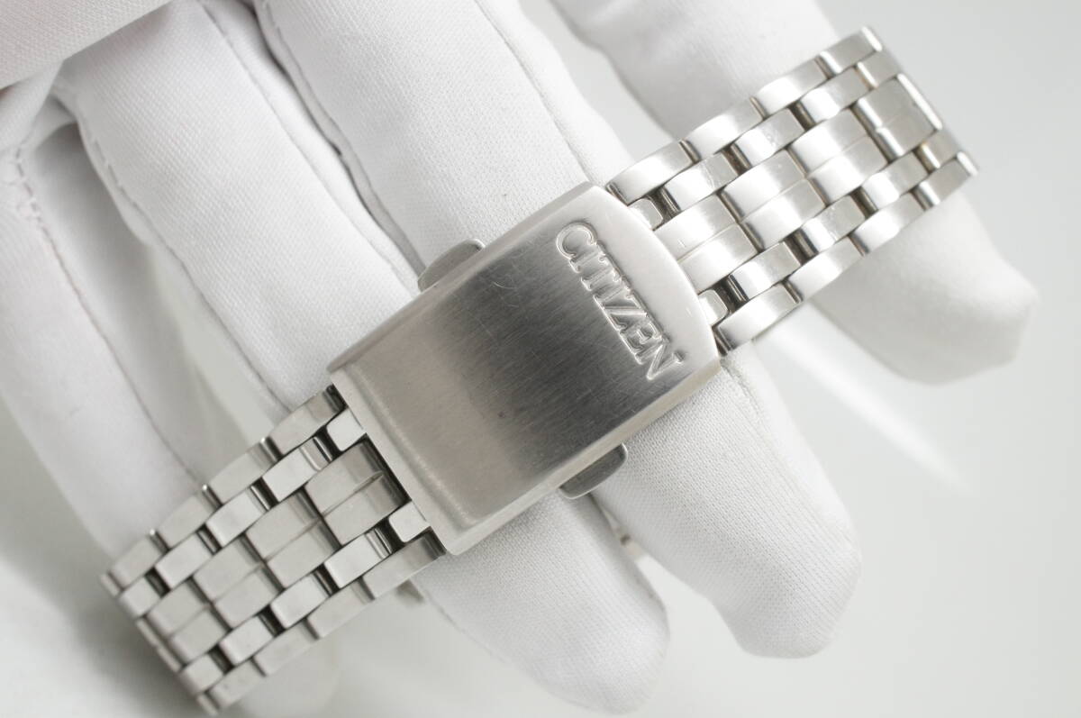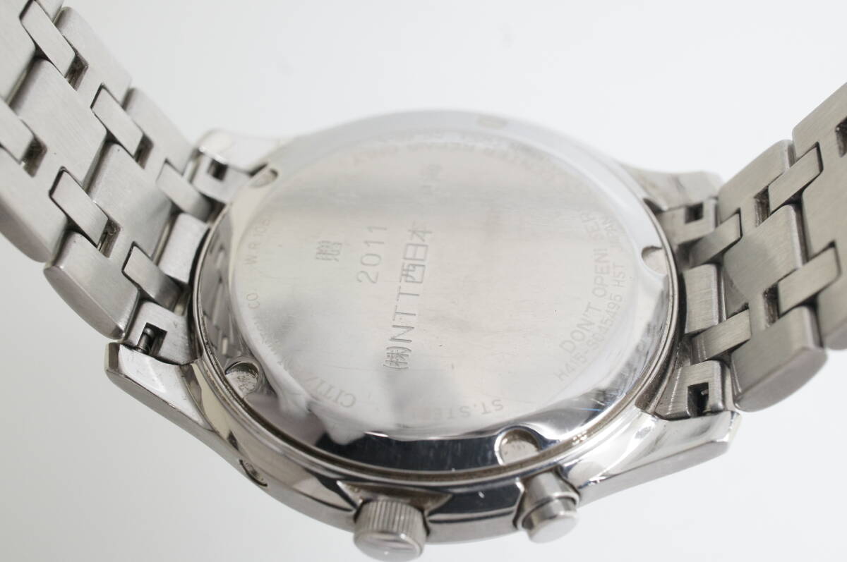 Z32●作動良好 CITIZEN シチズン Eco-Drive エコドライブ 電波ソーラー H415-S045495 黒文字盤 デイト メンズ腕時計 シルバー お洒落
