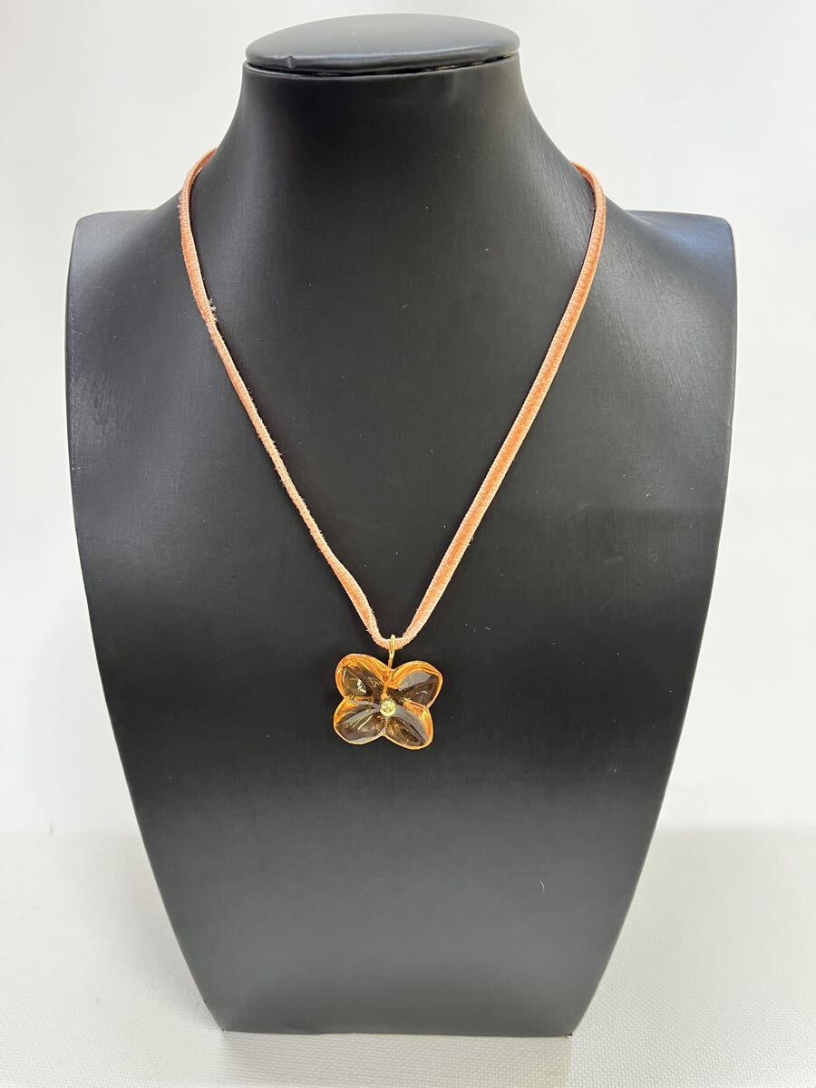| ⑲☆Baccarat バカラ K18 金 オルテンシア フラワー クリスタルガラス オレンジ系 チョーカー ペンダント アクセサリー 箱 |