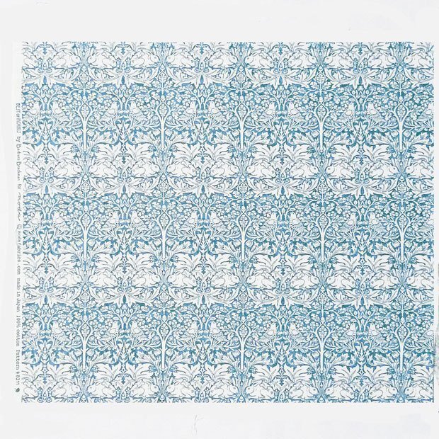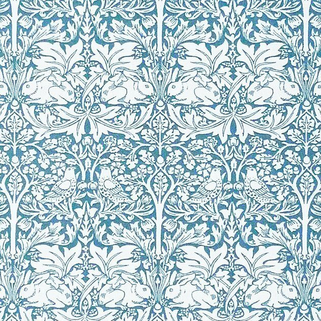 ウサギとハトと植物を対称的に整然と配置しています。繰り返しのリズムが美しさを感じさせます。