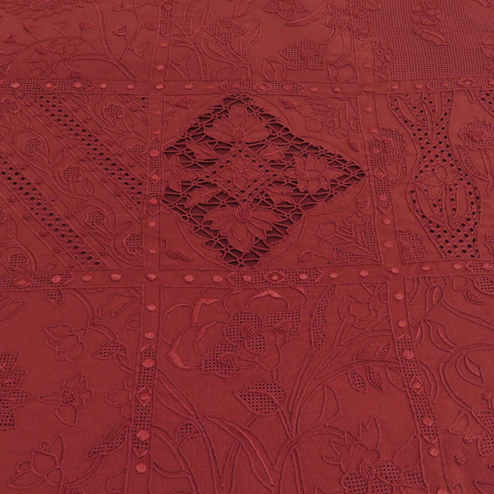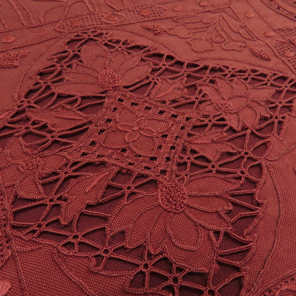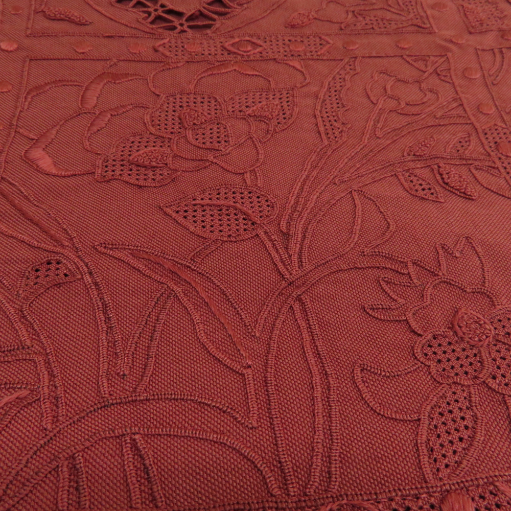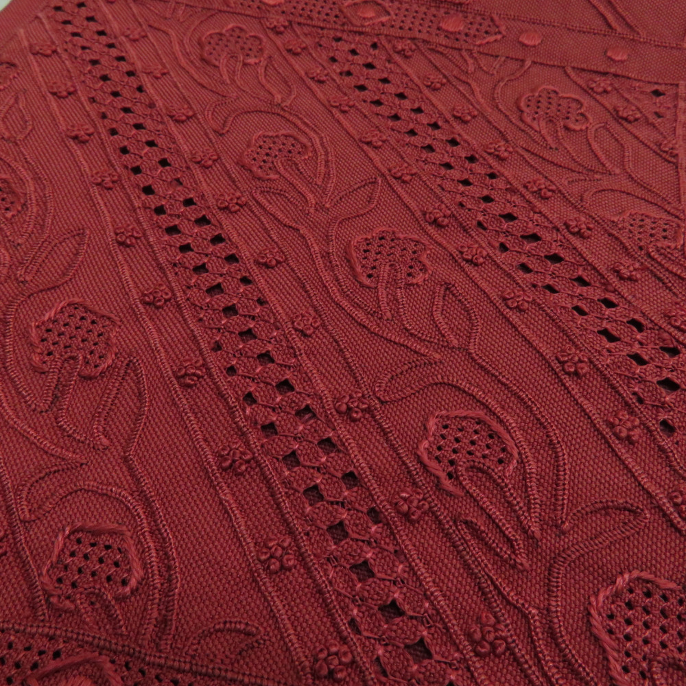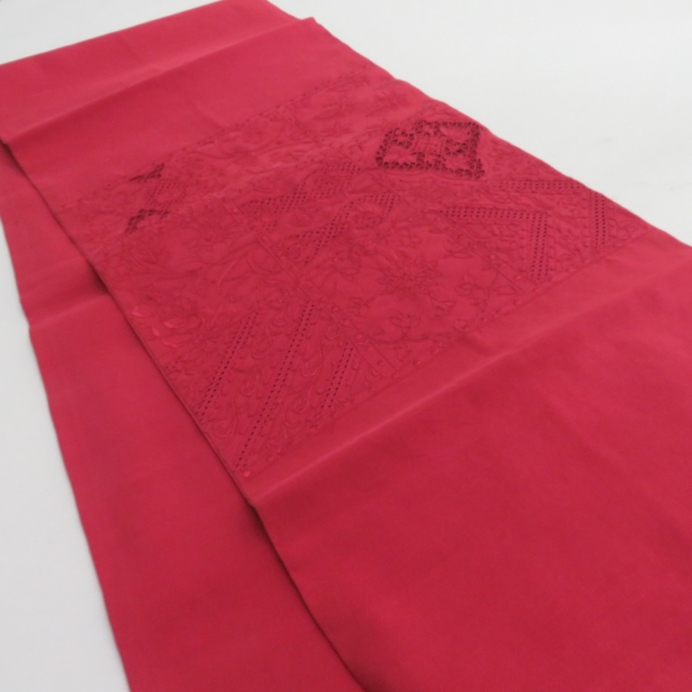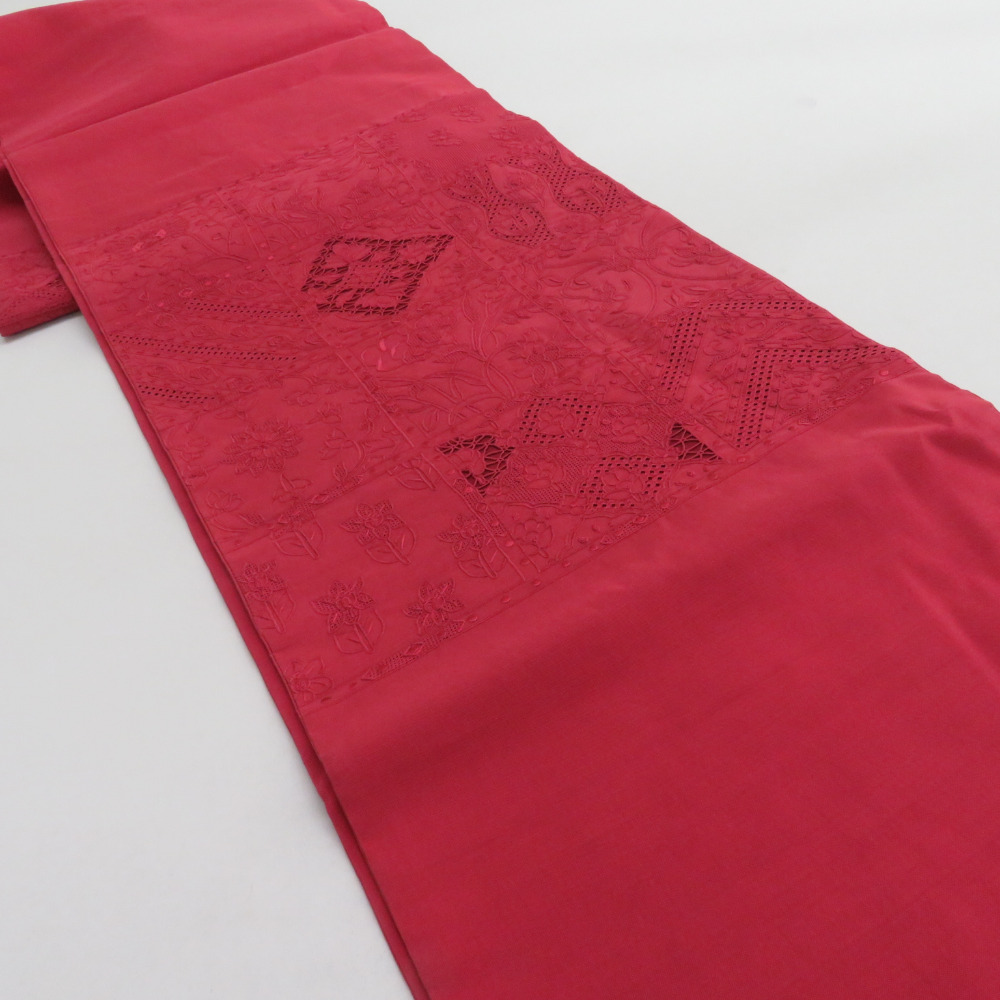 | 袋帯 格天井文様 蘇州刺繍 赤色 お太鼓柄 正絹 仕立て上がり 着物帯 カジュアル 長さ380cm |