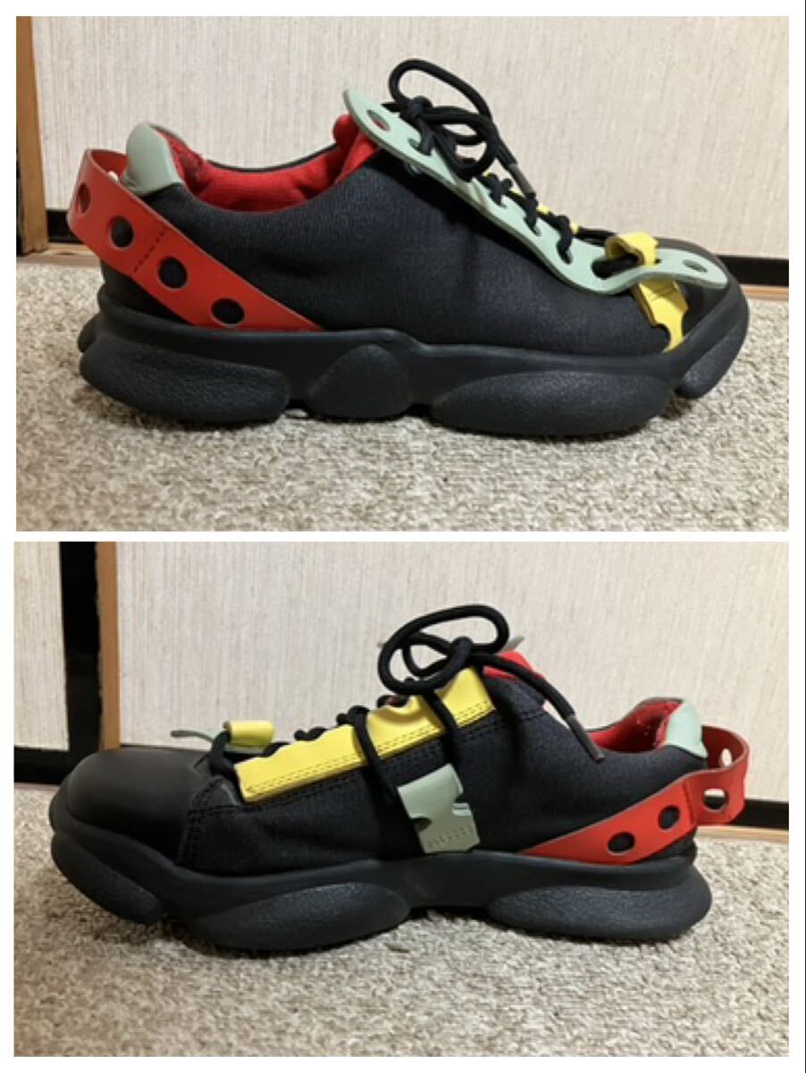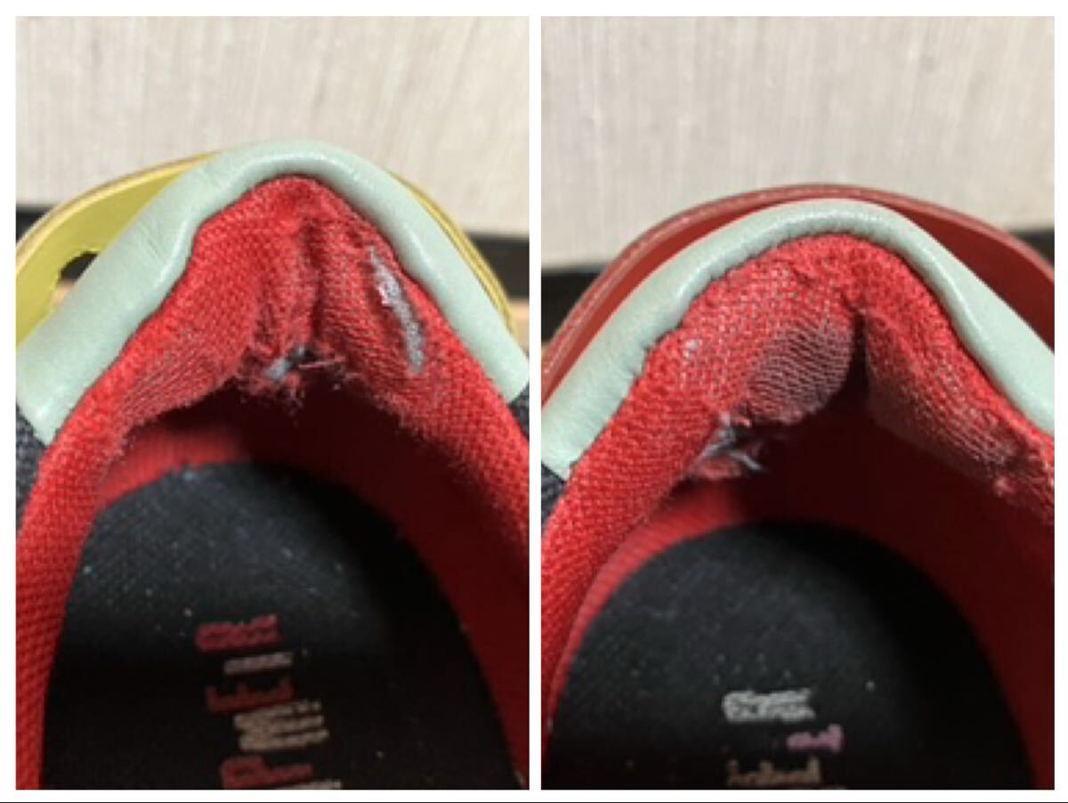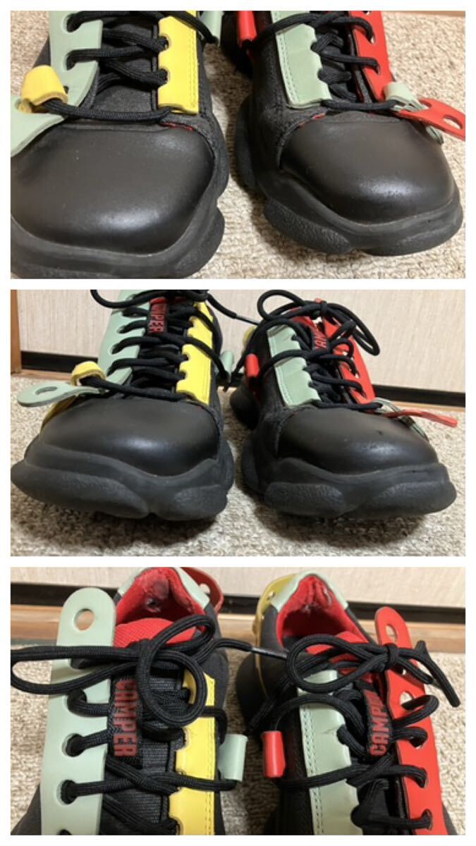 アッパーの部分的な擦れや汚れ、踵内側の擦れ、破れなどの使用感あります。