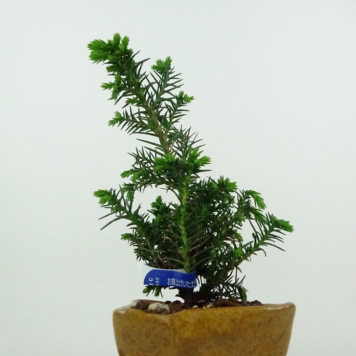 | ■植物ですので撮影時期や季節によって剪定などの手入れにより写真から変化がございます。撮影日をご確認のうえ、ご注文ください。 【杉盆栽】 開花時期は3~4月頃、雌雄同株で淡黄色の雄花と小枝の先に緑色の球形を数個つける雌花が別々に咲きます。 球果は初め緑色をしており熟して褐色となります。 |