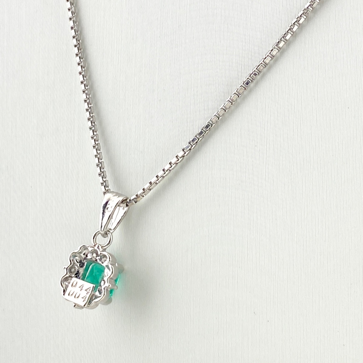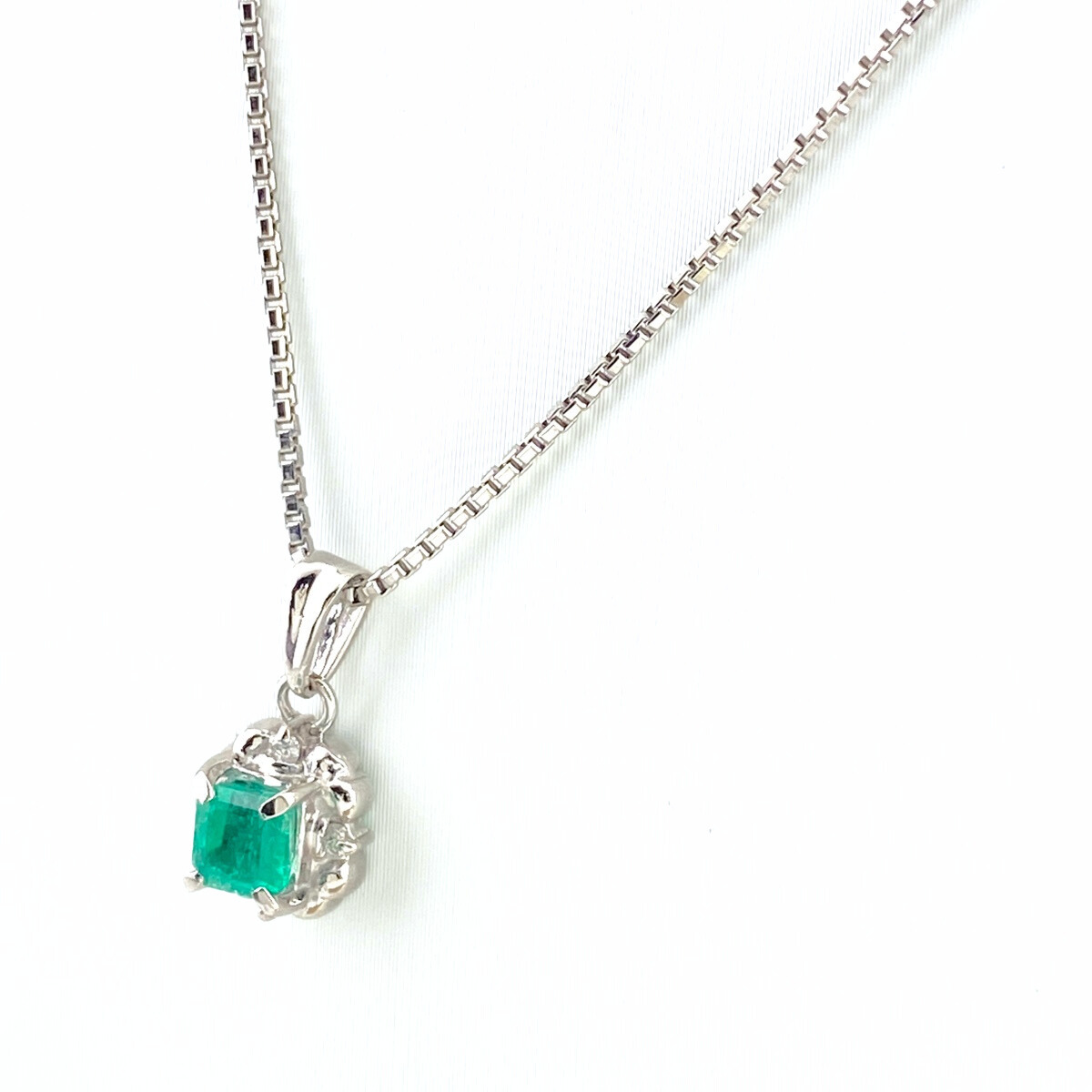 | トップ:Pt900、チェーン:Pt850 エメラルド:0.44ct、メレダイヤ:0.04ct 中古品の為、若干のキズや汚れ、エメラルドにカケがございます。 |