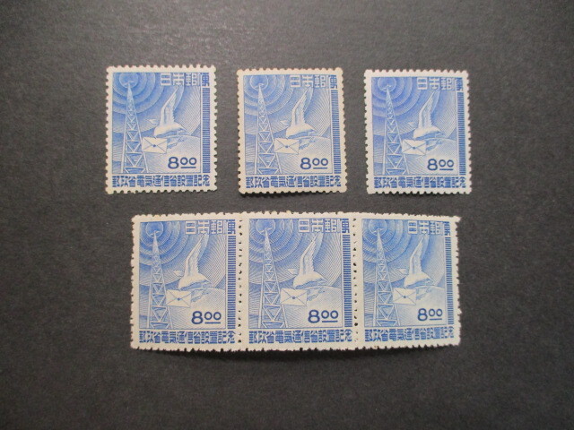 記念切手   49年・郵政省電通省・8円     単片*6枚      美品