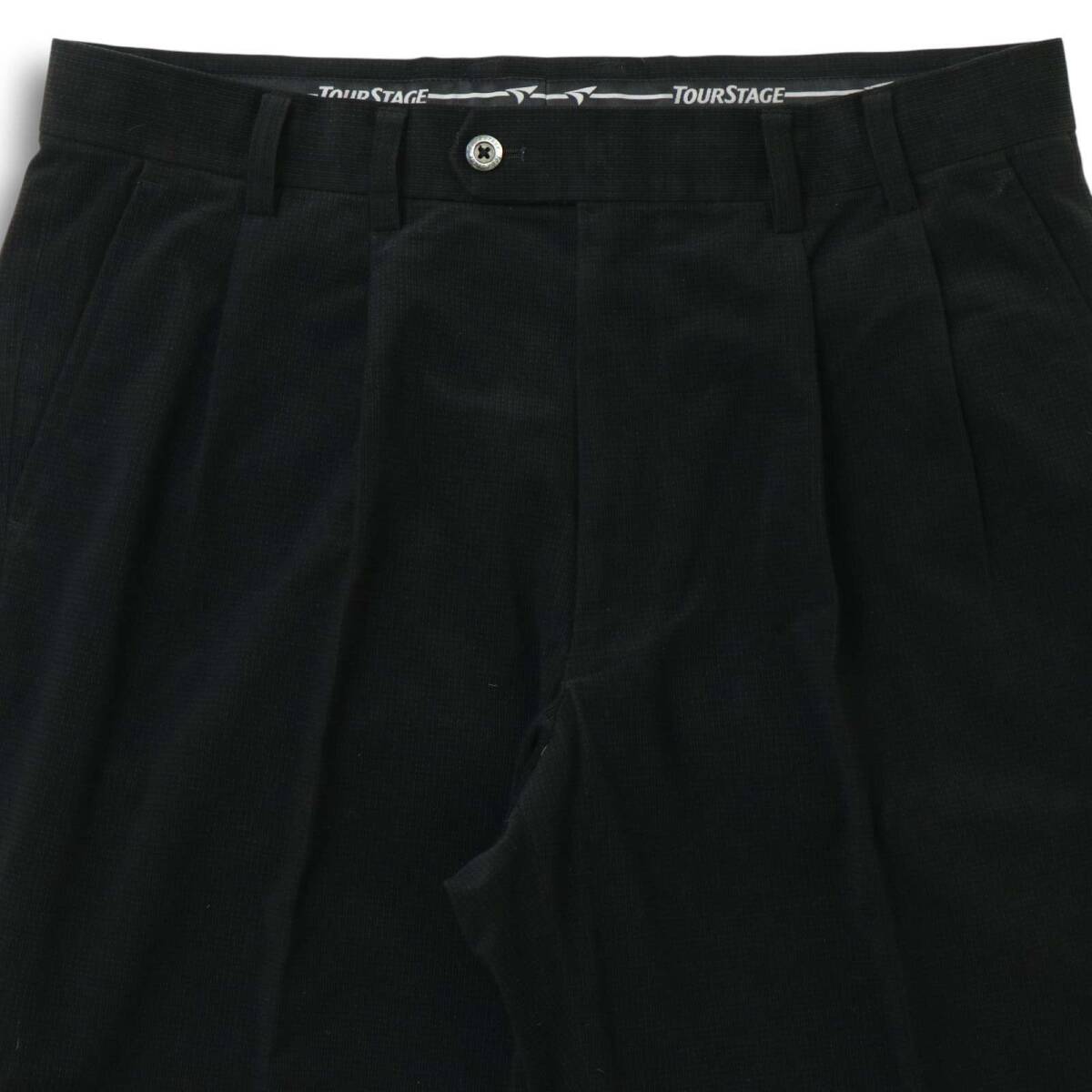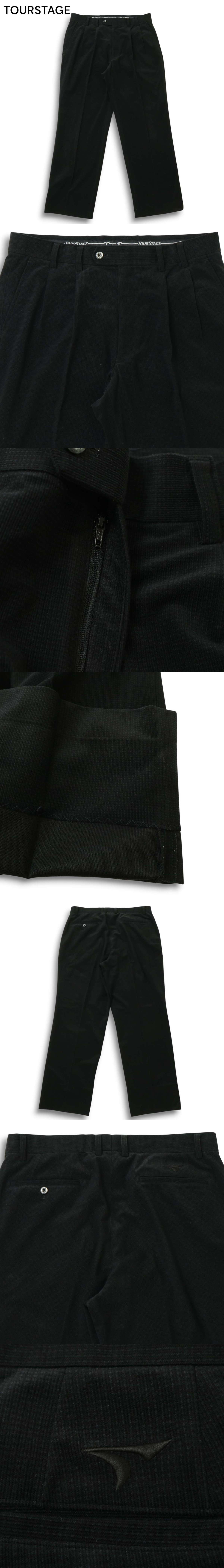 TOURSTAGE ツアーステージ ゴルフ 秋冬★ ロゴ刺繍 タック スラックス パンツ Sz.88 メンズ 黒