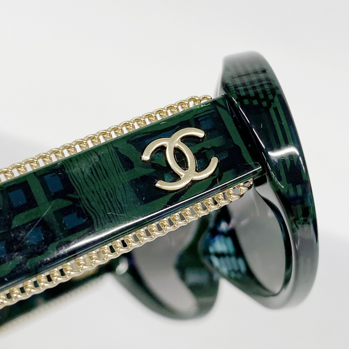 【5he5028-h】シャネル サングラス 5515-A プラスチック グリーン シャンパンゴールド金具【中古】レディース