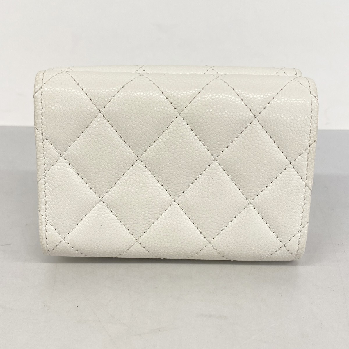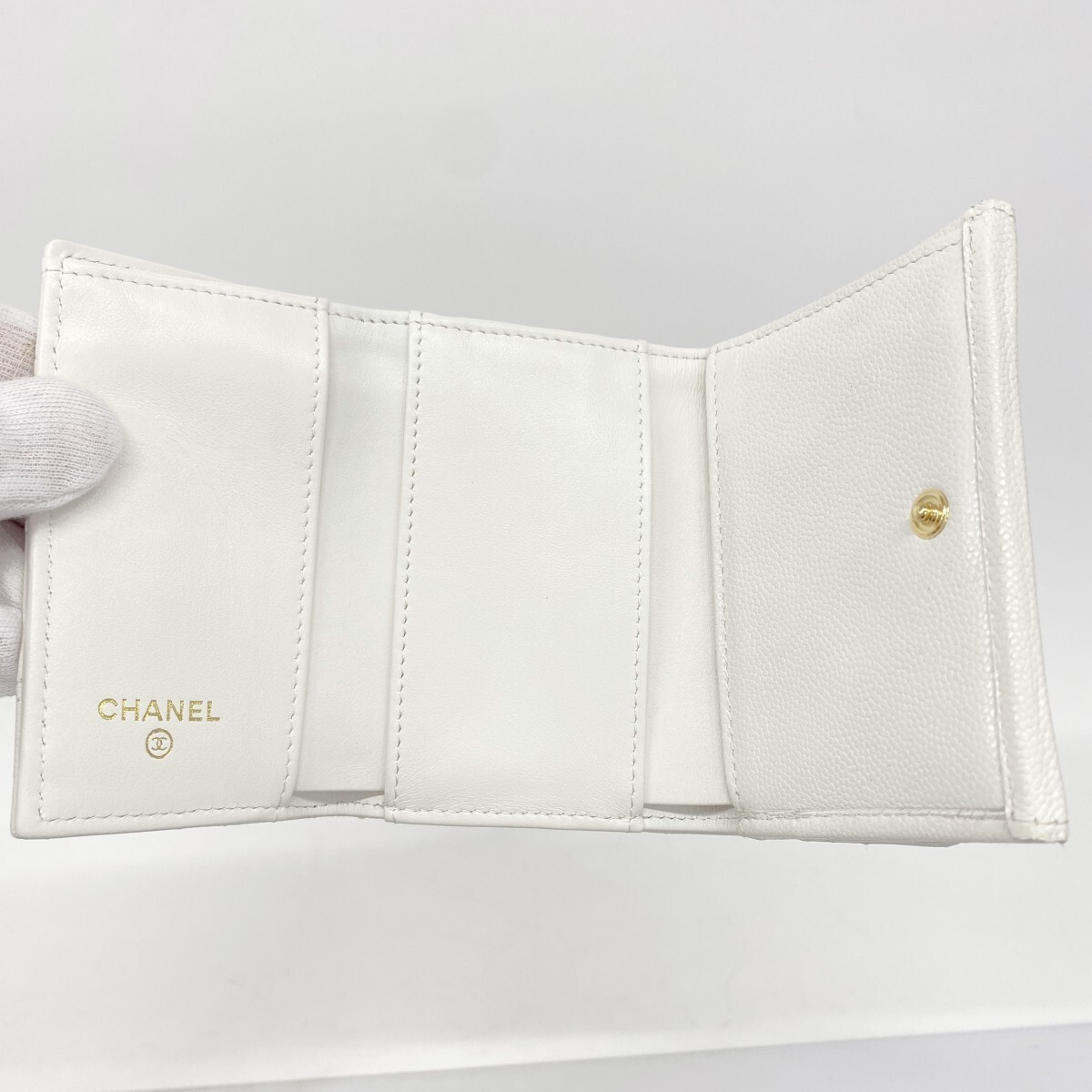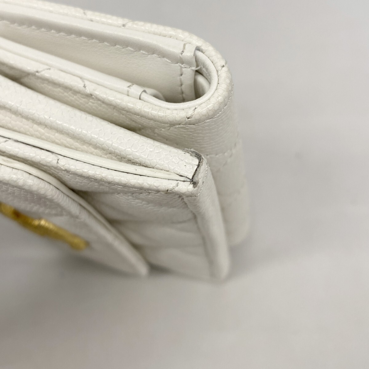 【5he5207-h】シャネル 三つ折り財布 マトラッセ キャビアスキン ホワイト ゴールド金具【中古】レディース